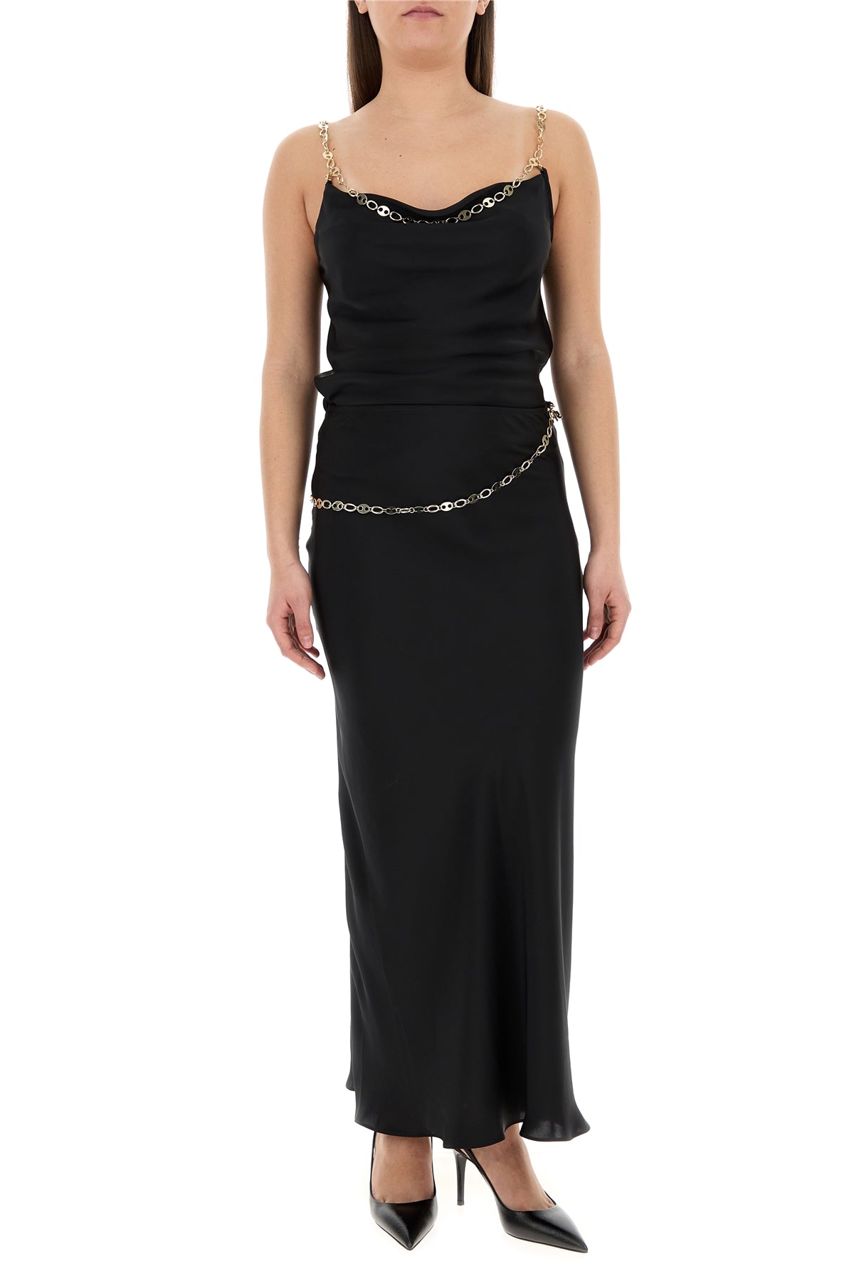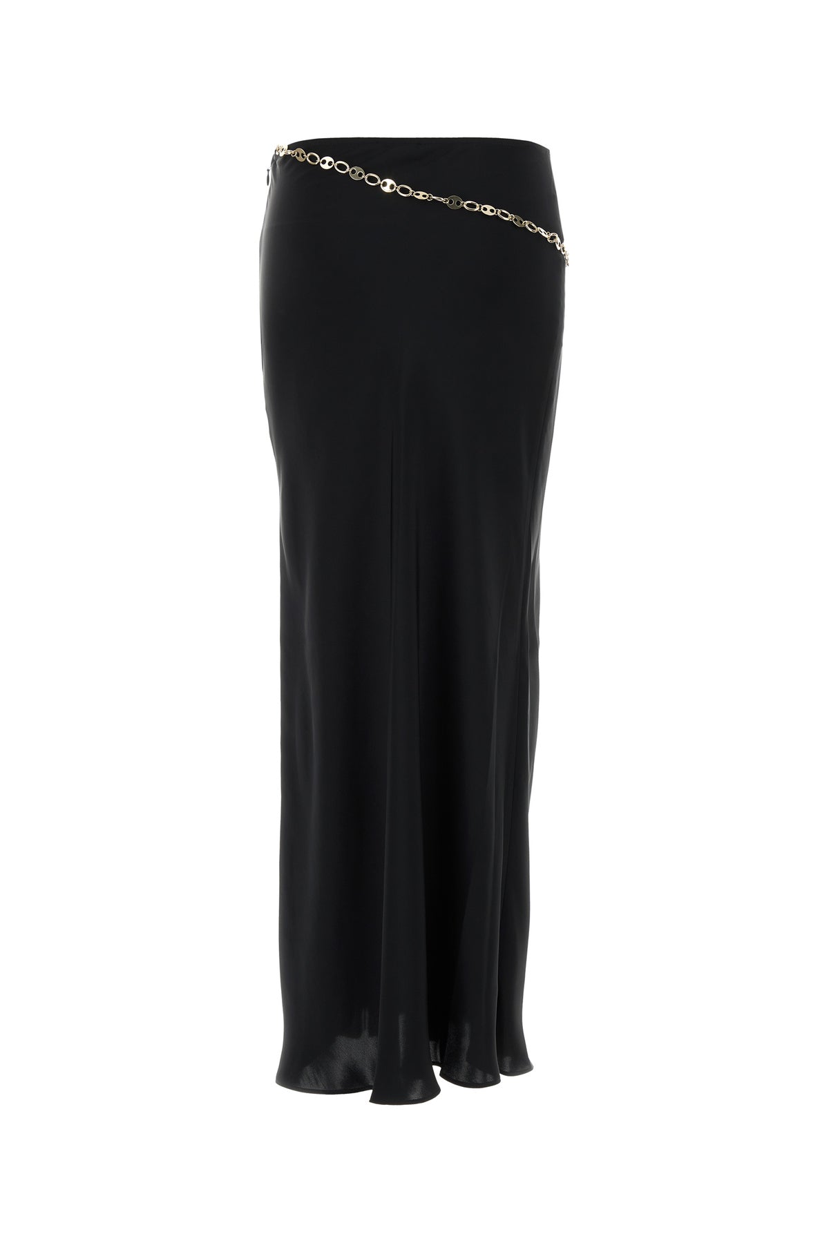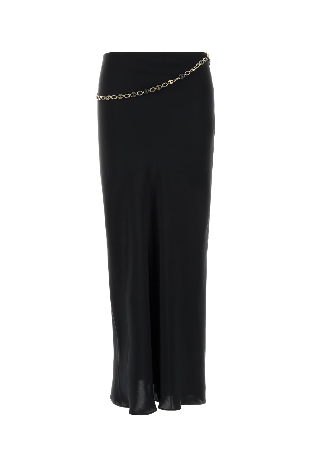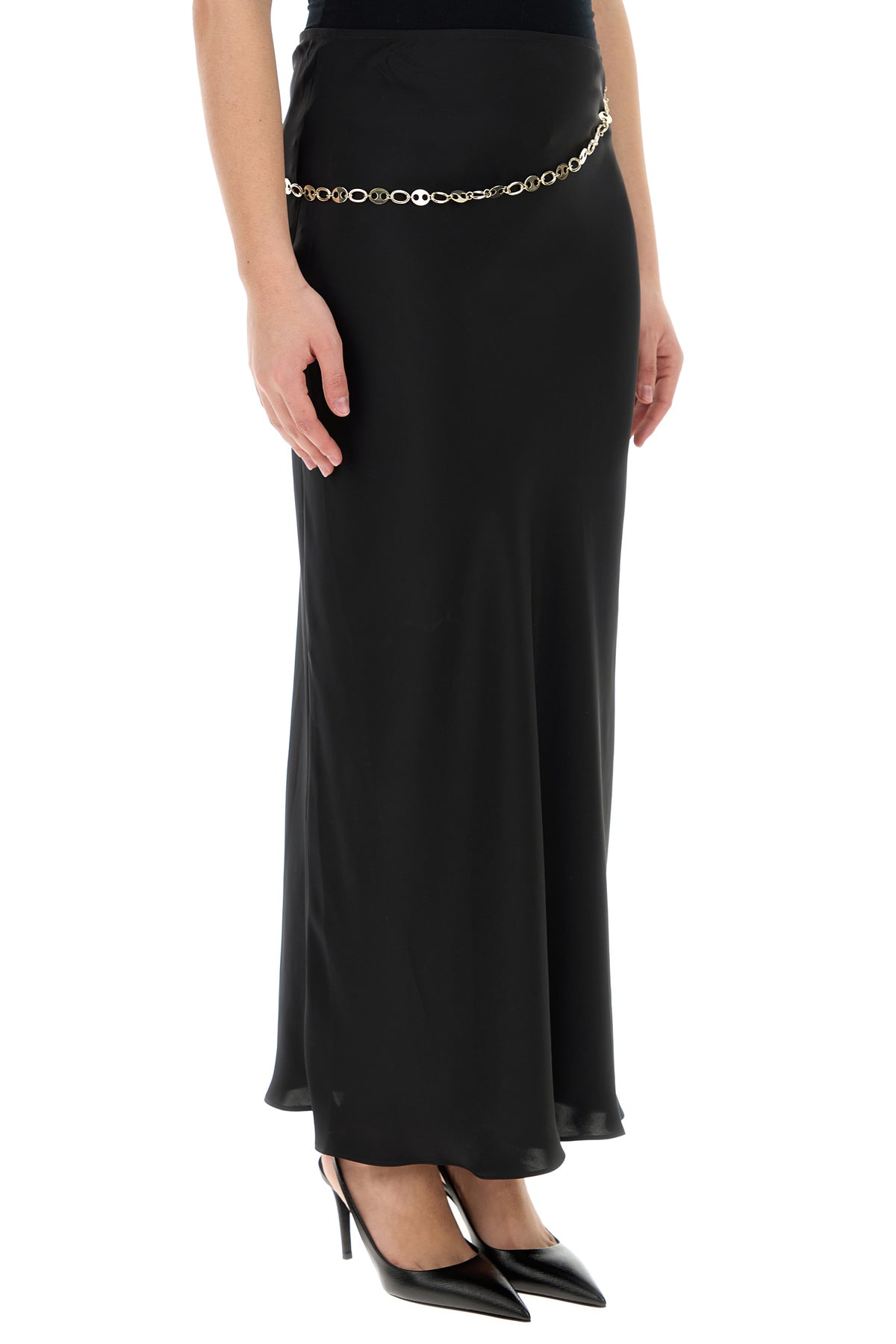Midi-length skirt realized in satin enriched by detachable metal chain insert at the waist.