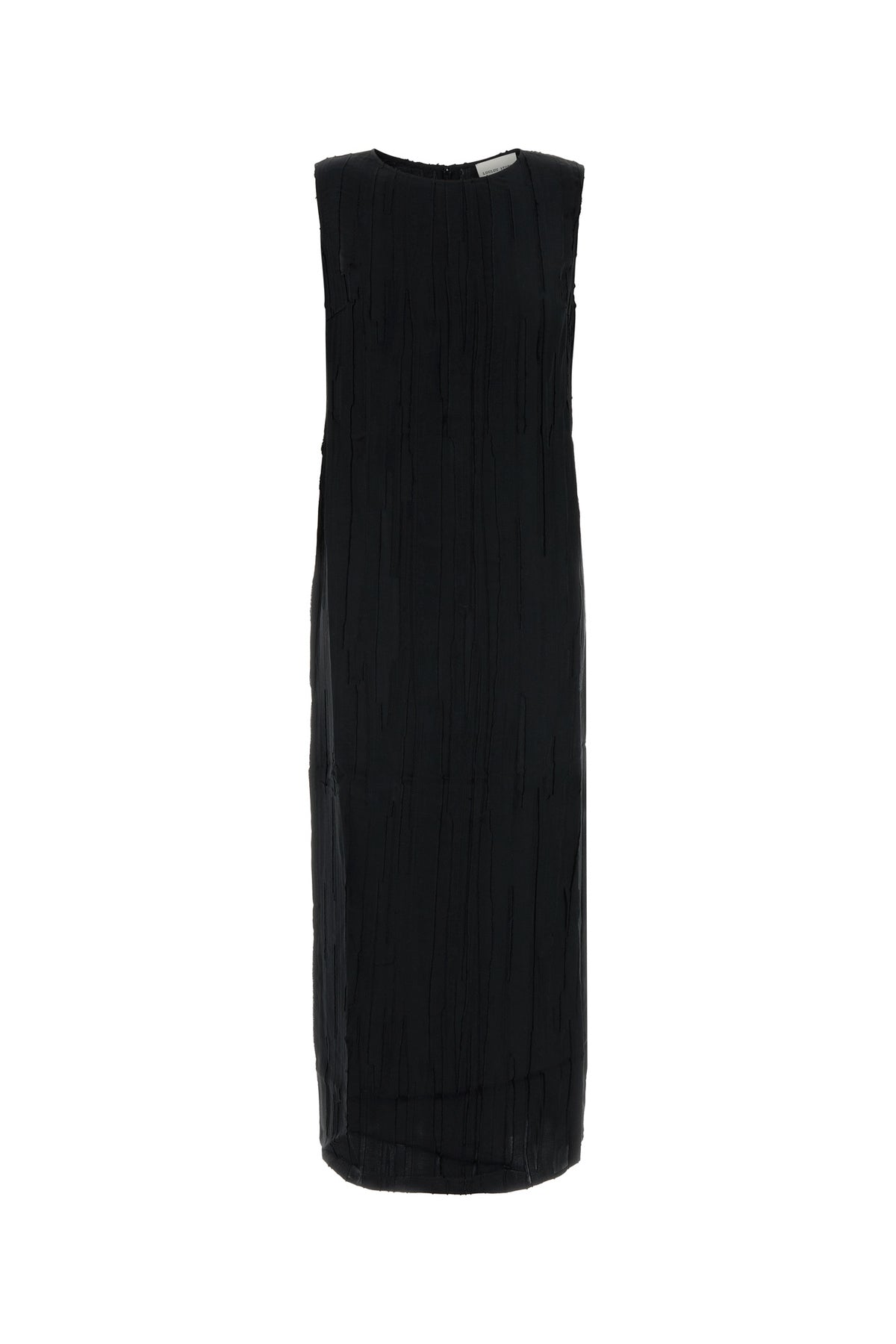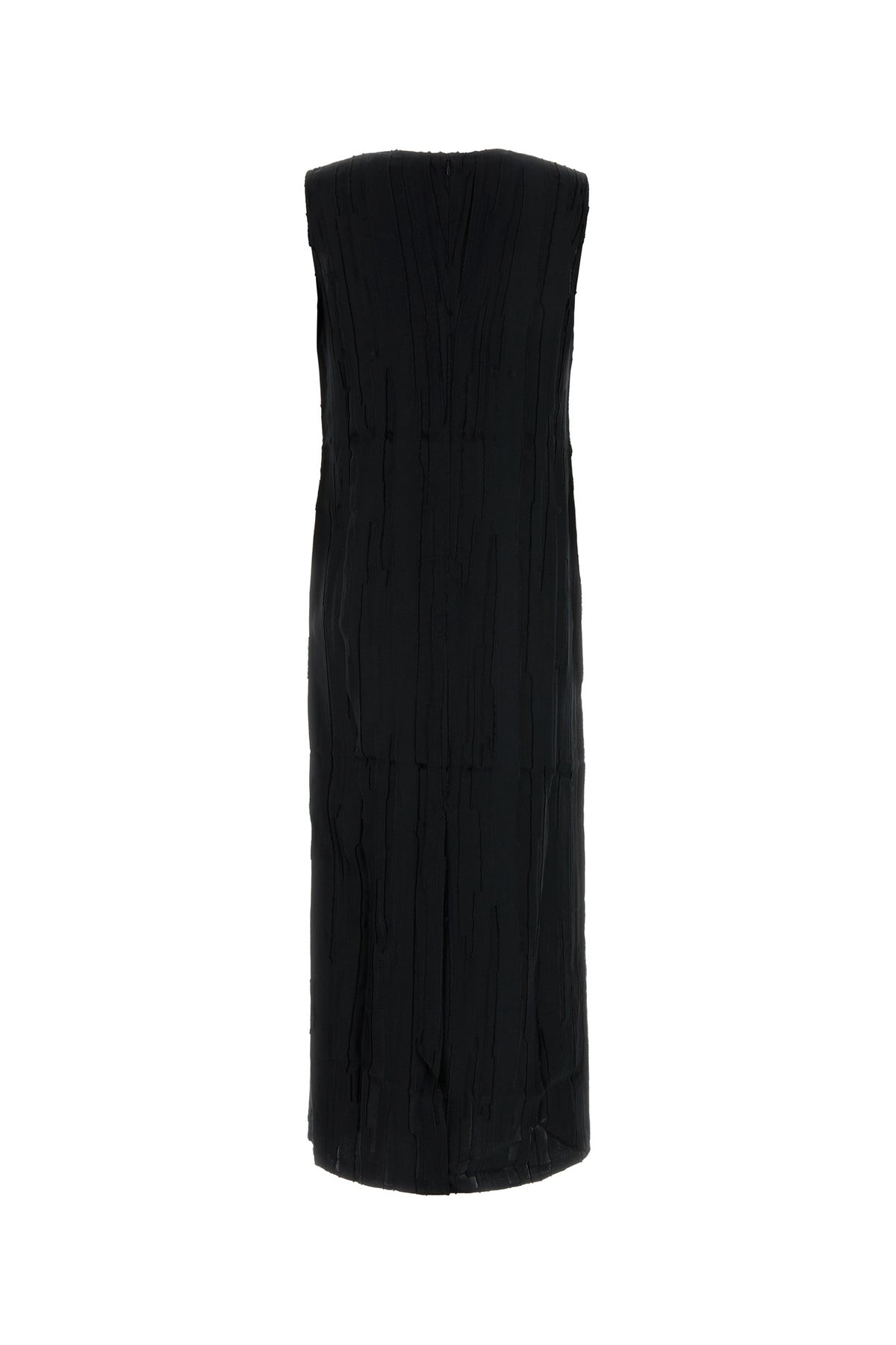 Dress realized in silk and cotton characterized by striped tonal embroidery on the entire surface.