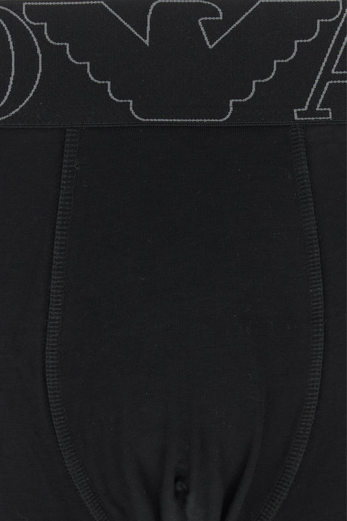 Boxer realized in stretch cotton characterized by logoed elastic waist.