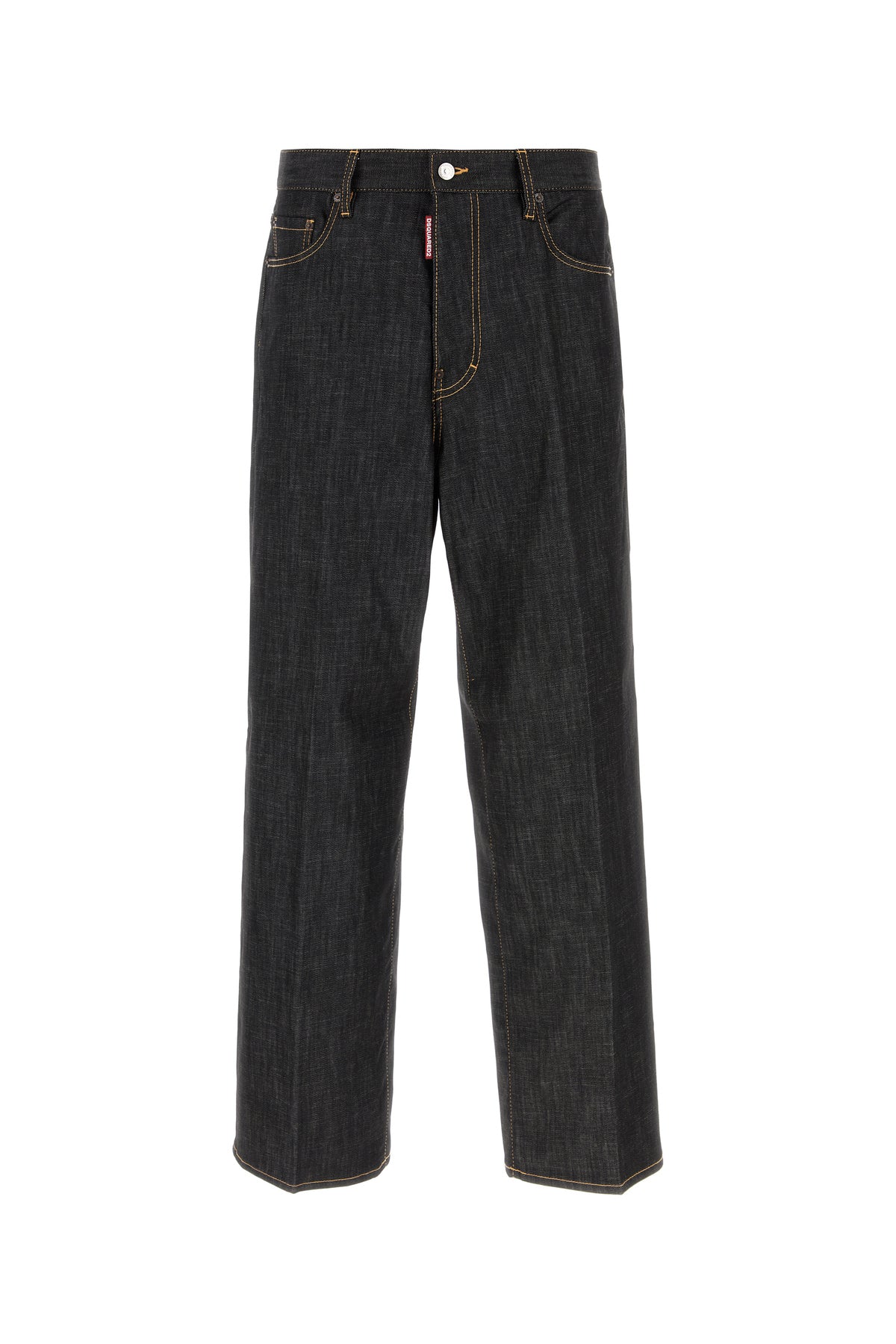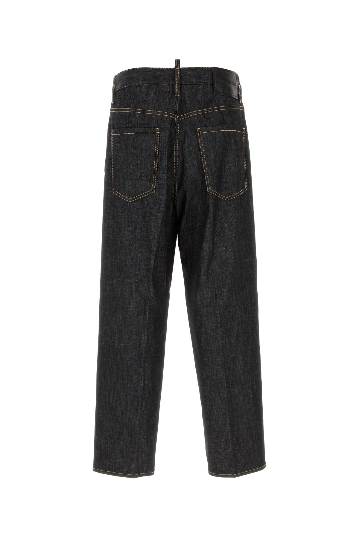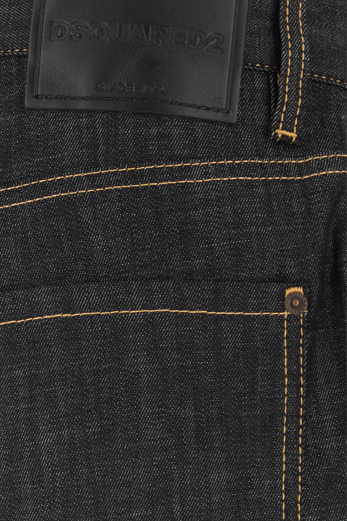 Wide-leg jeans realized in stretch cotton denim enriched by tonal logoed label at the back.