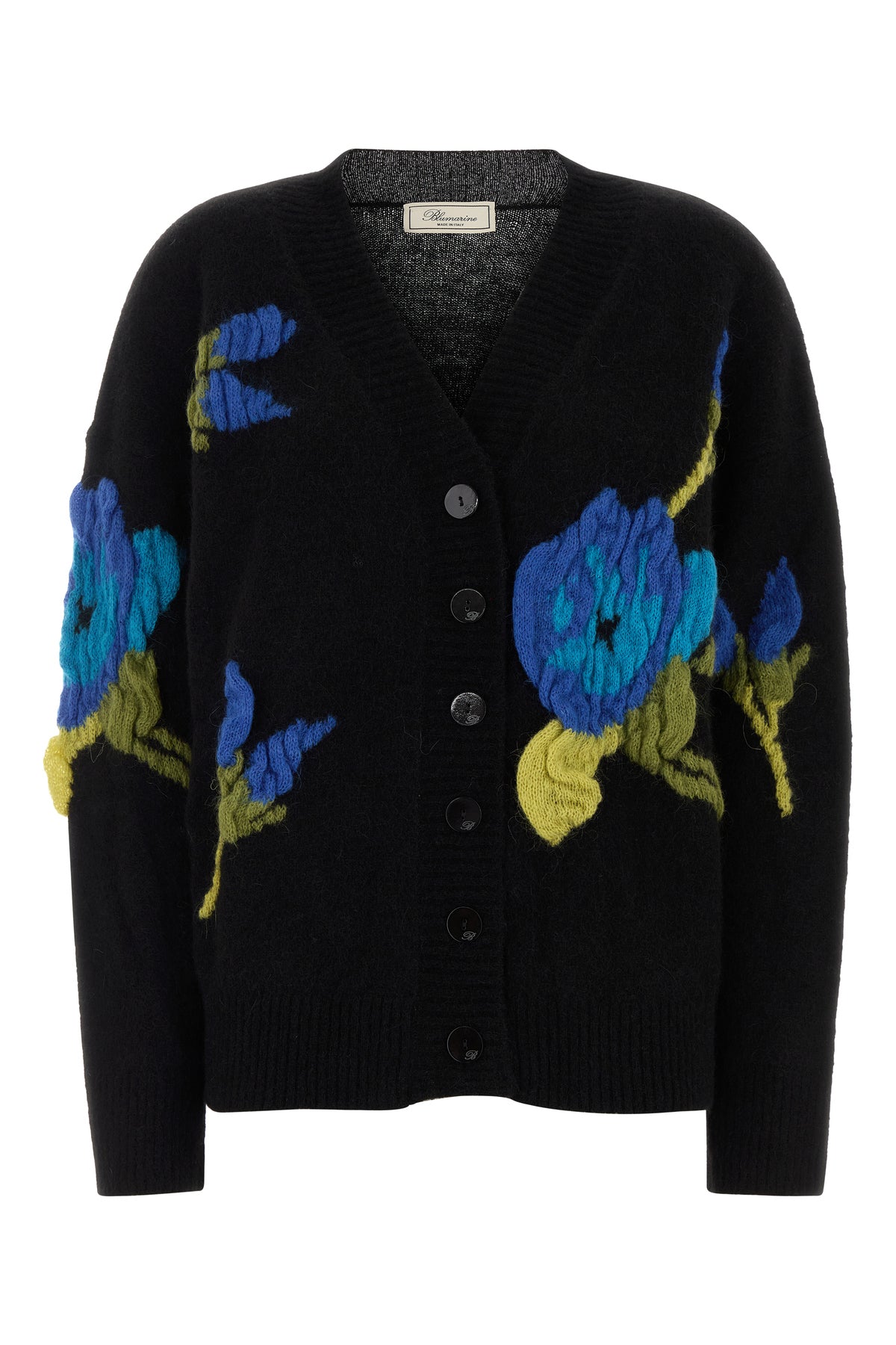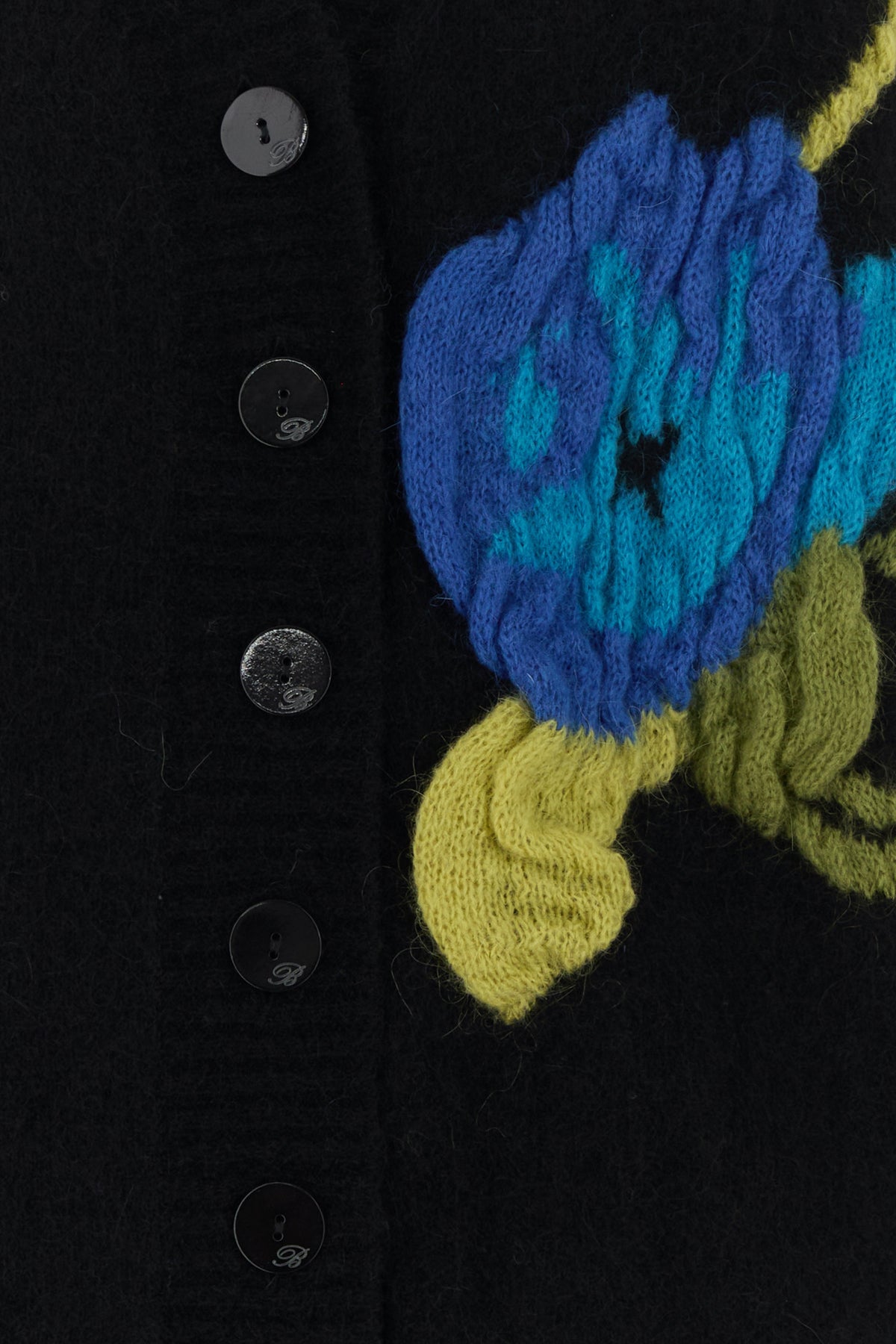 Cardigan realized in stretch nylon blend characterized by floral embroideries at the front.