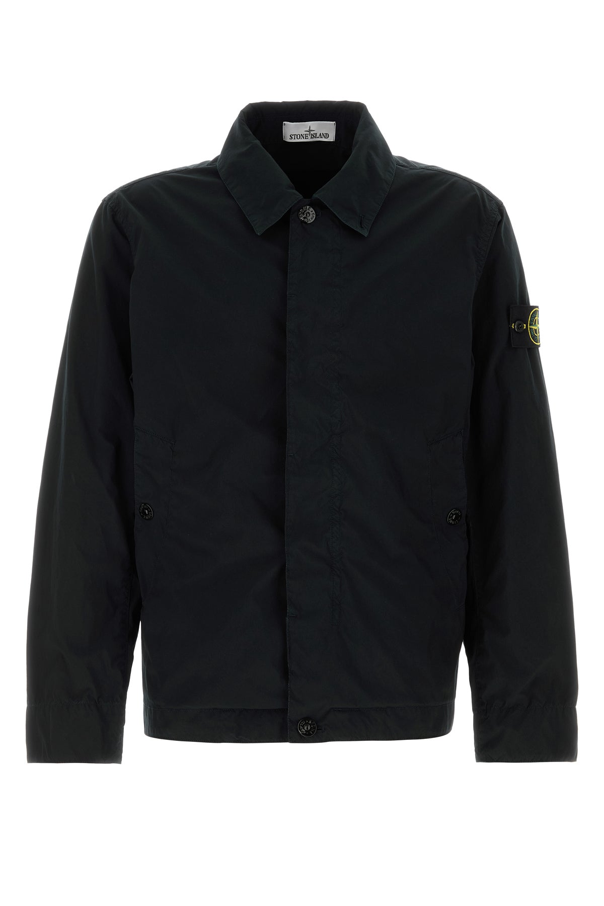 Jacket realized in stretch polyester enriched by detachable logoed label on the sleeve.