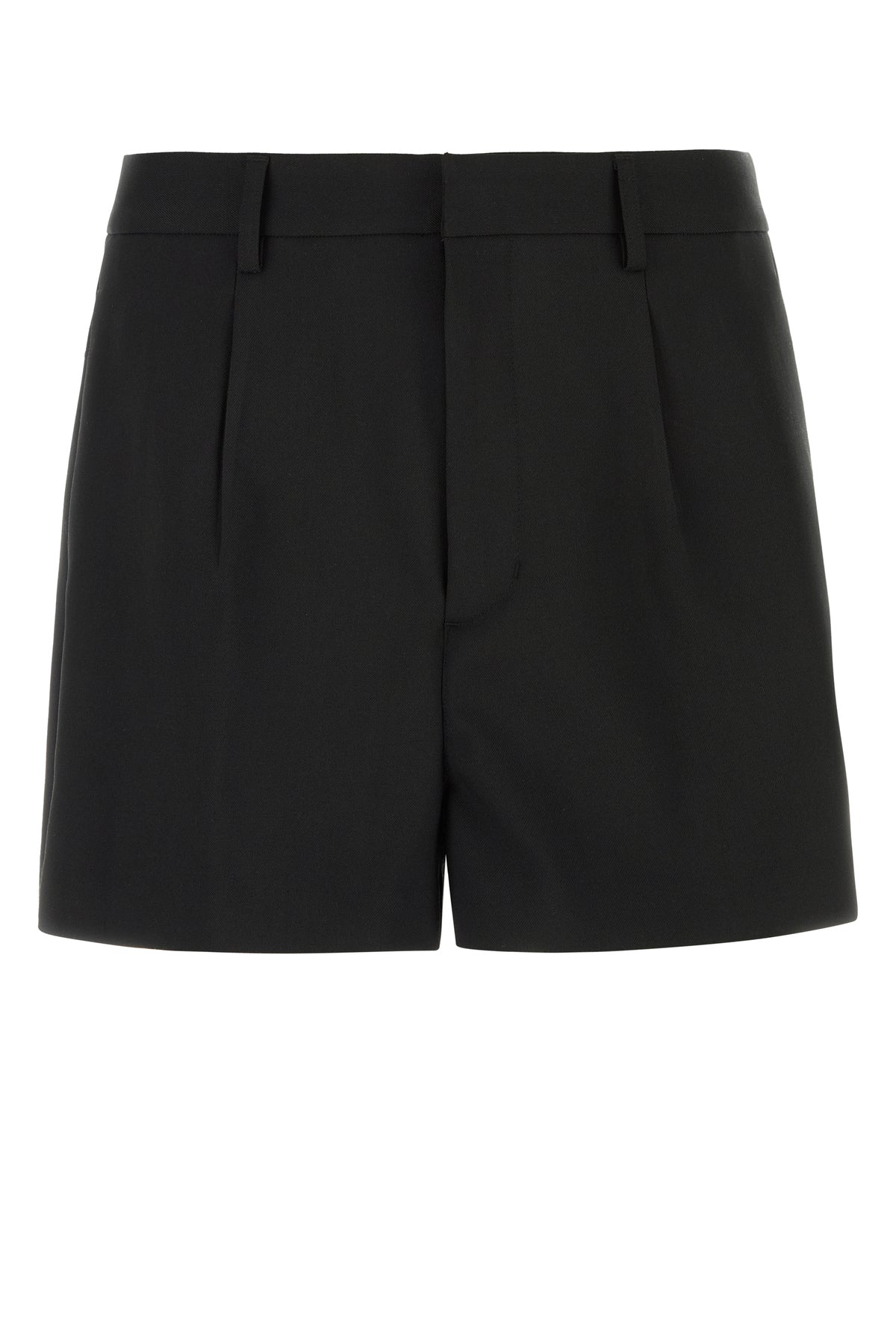 Shorts realized in stretch polyester blend characterized by inverted pleats.