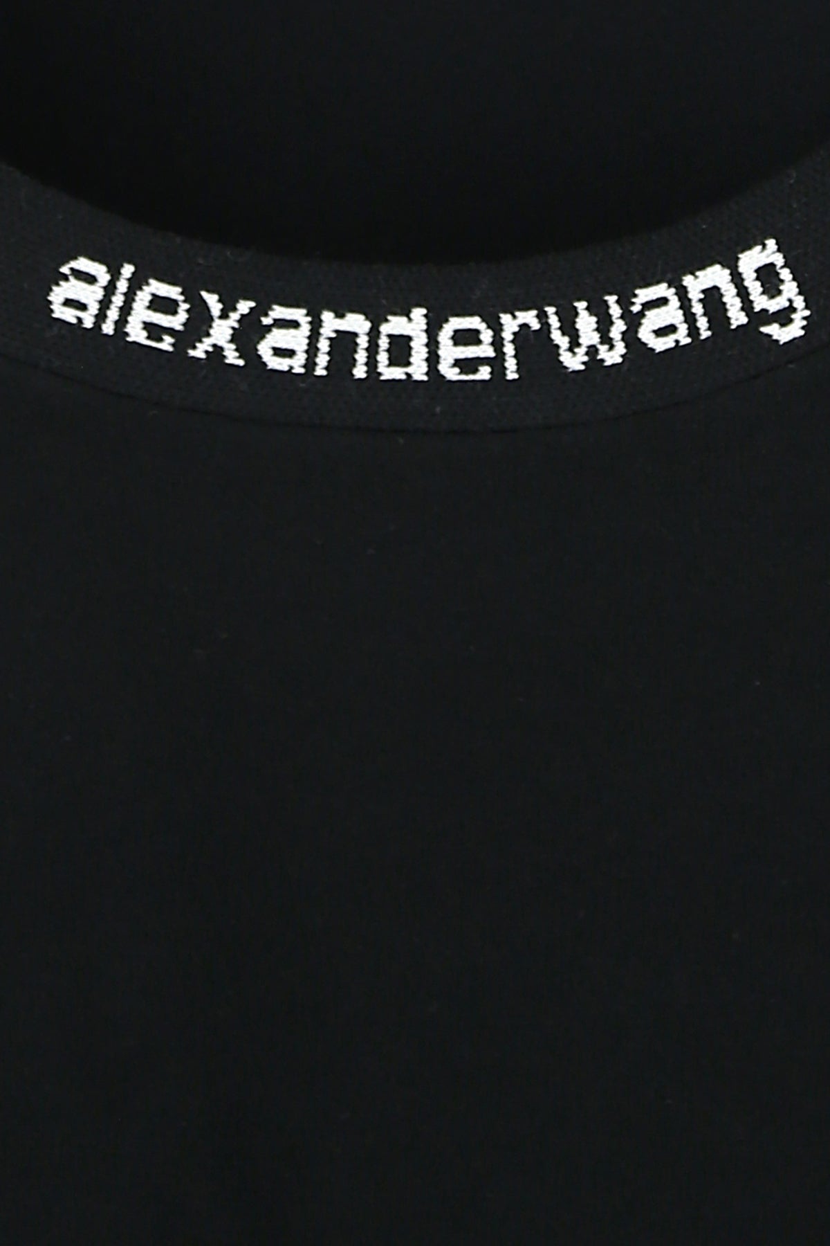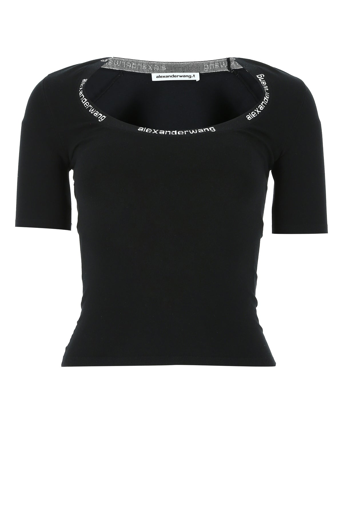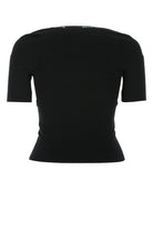 Top realized in stretch viscose blend characterized by contrasting embroidered logo on the neckline.