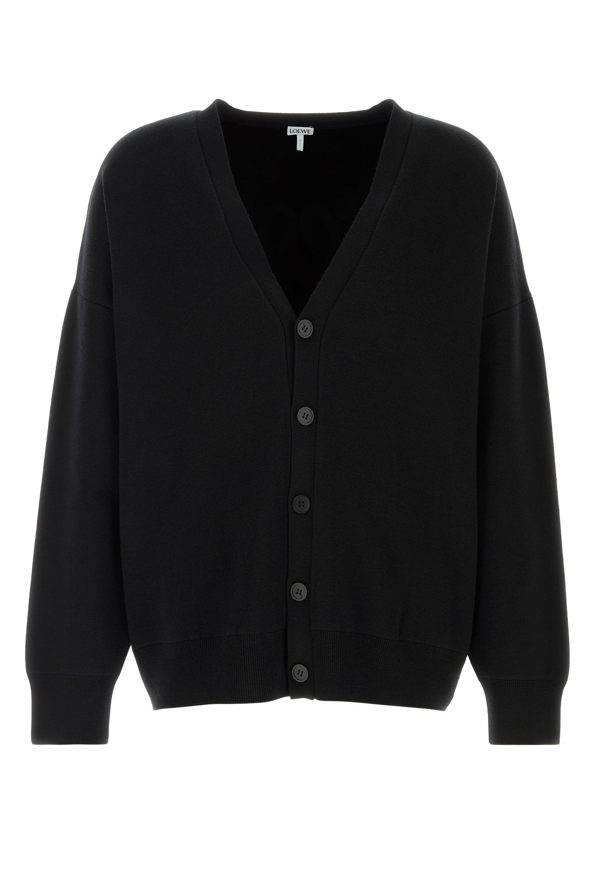 Cardigan realized in stretch wool blend characterized by tonal Anagram embroidery at the back.