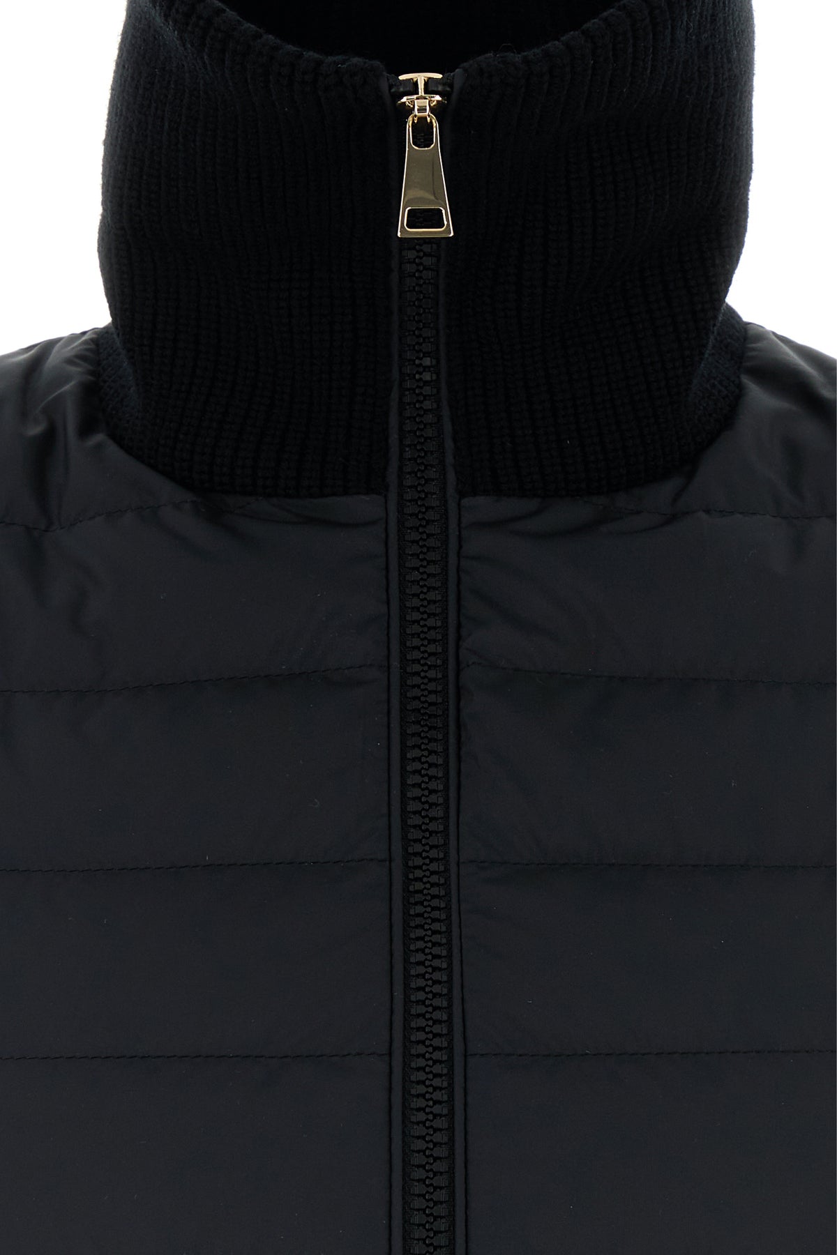 - Ribbed funnel neck and cuffs