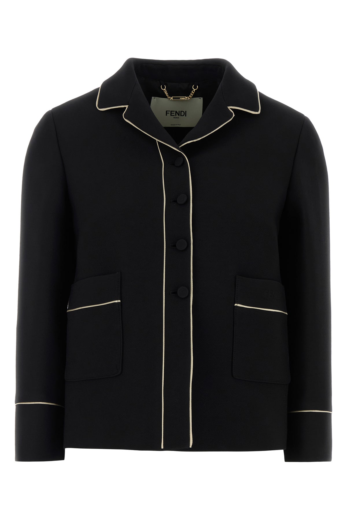 Blazer realized in wool and silk characterized by contrasting piping.