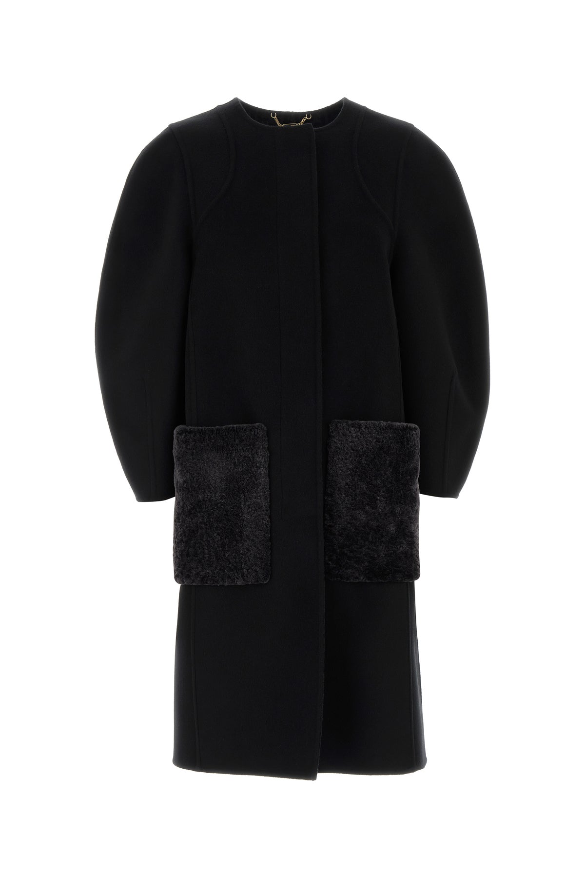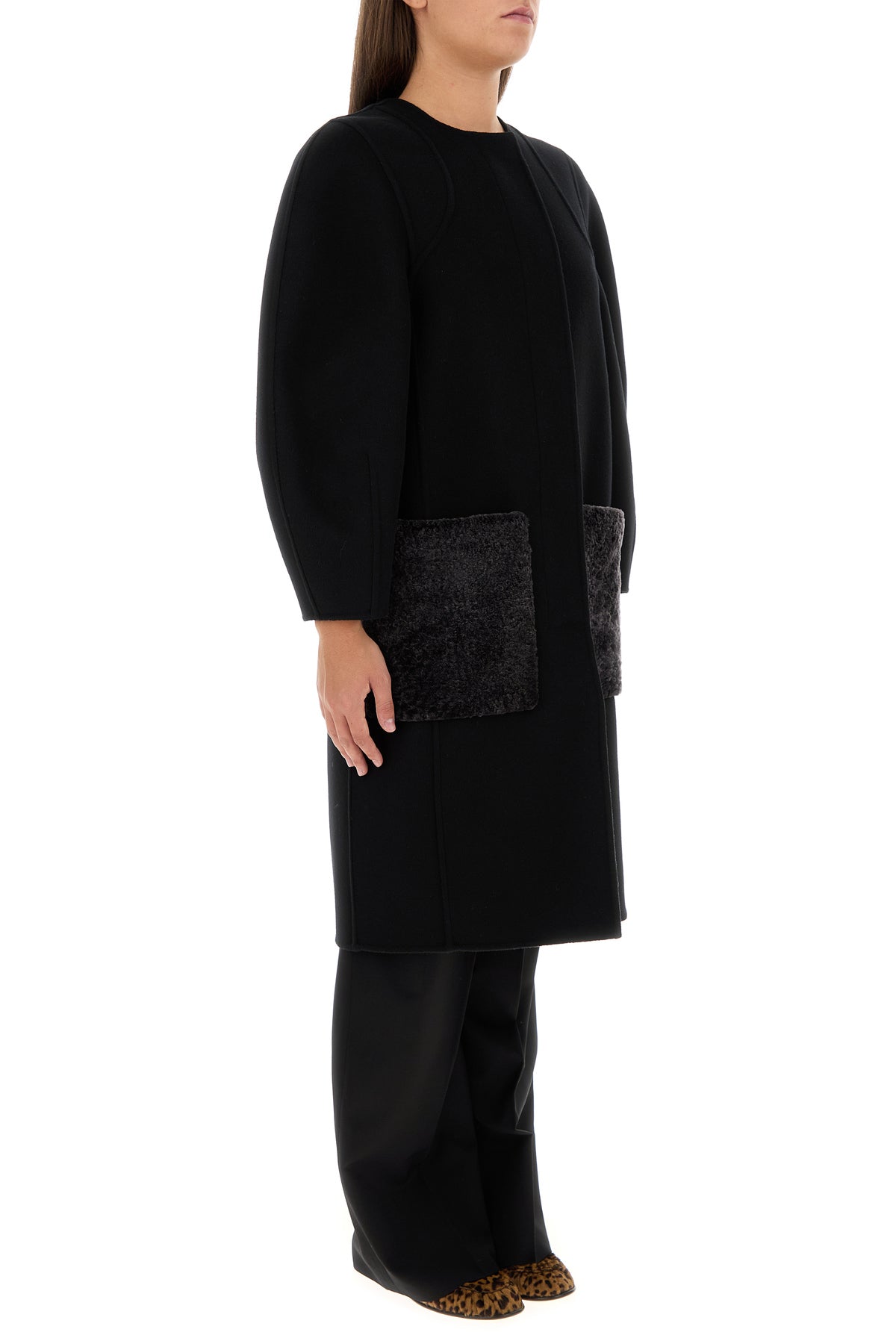 Coast realized in virgin wool and silk enriched by two fur pockets at the front.