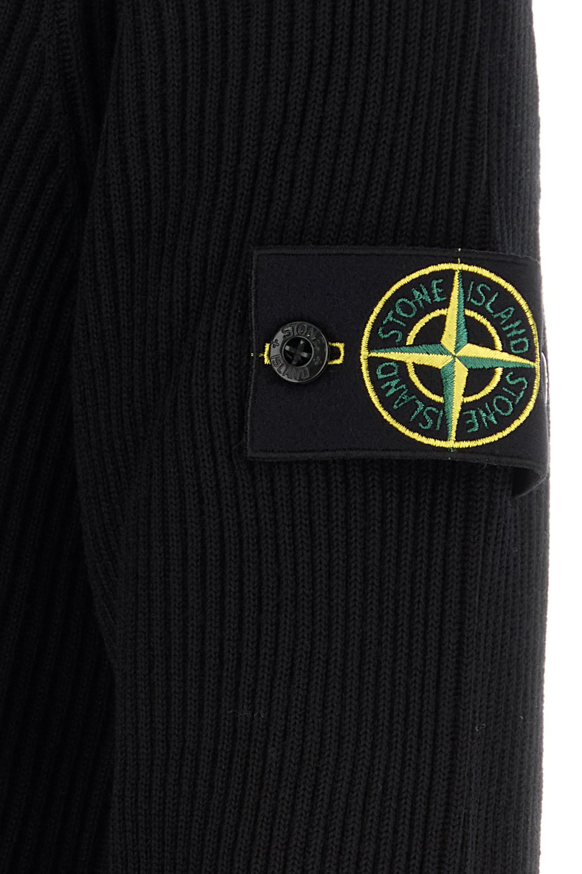 Sweater realized in pure ribbed virgin wool enriched by detachable logoed label on the sleeve.