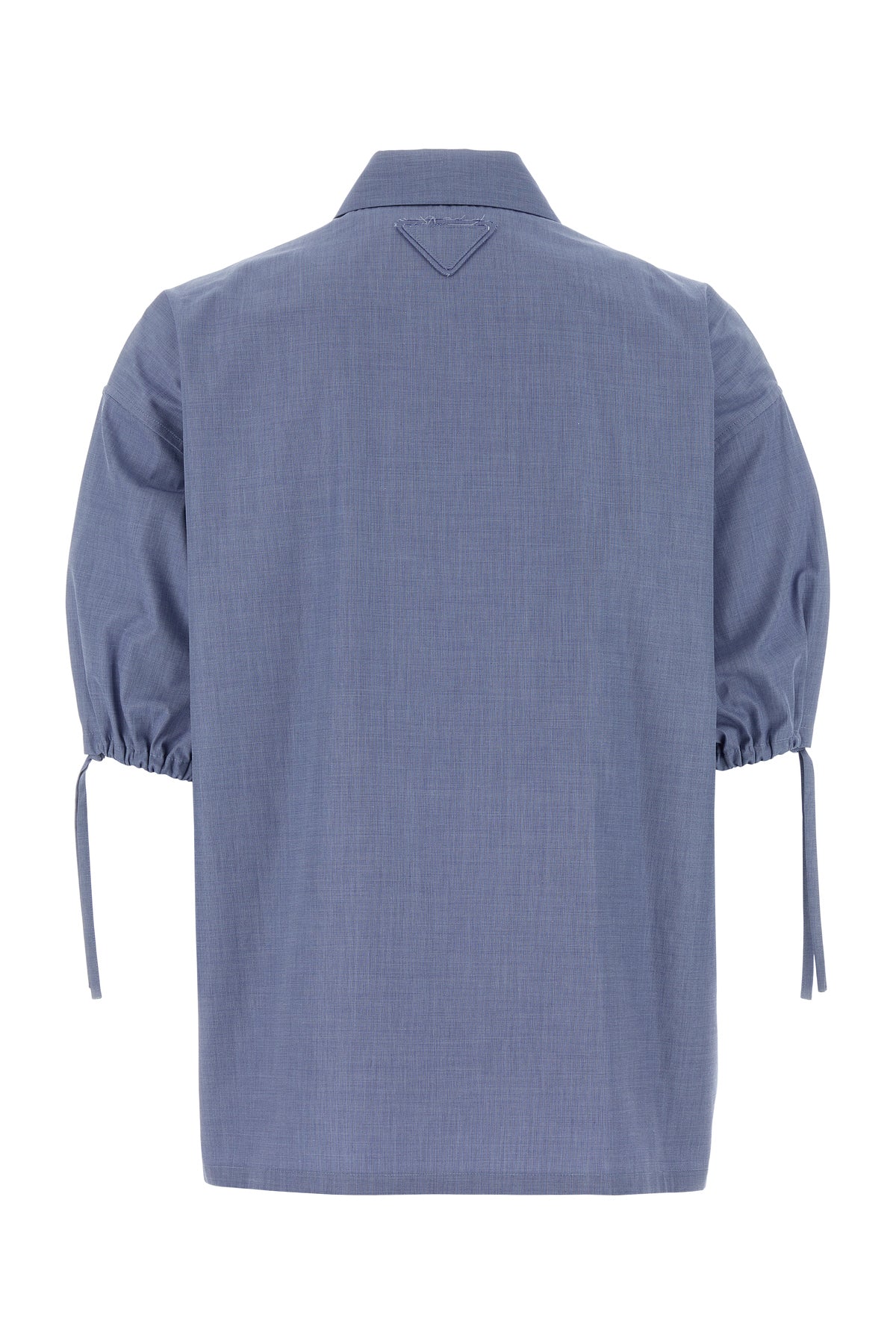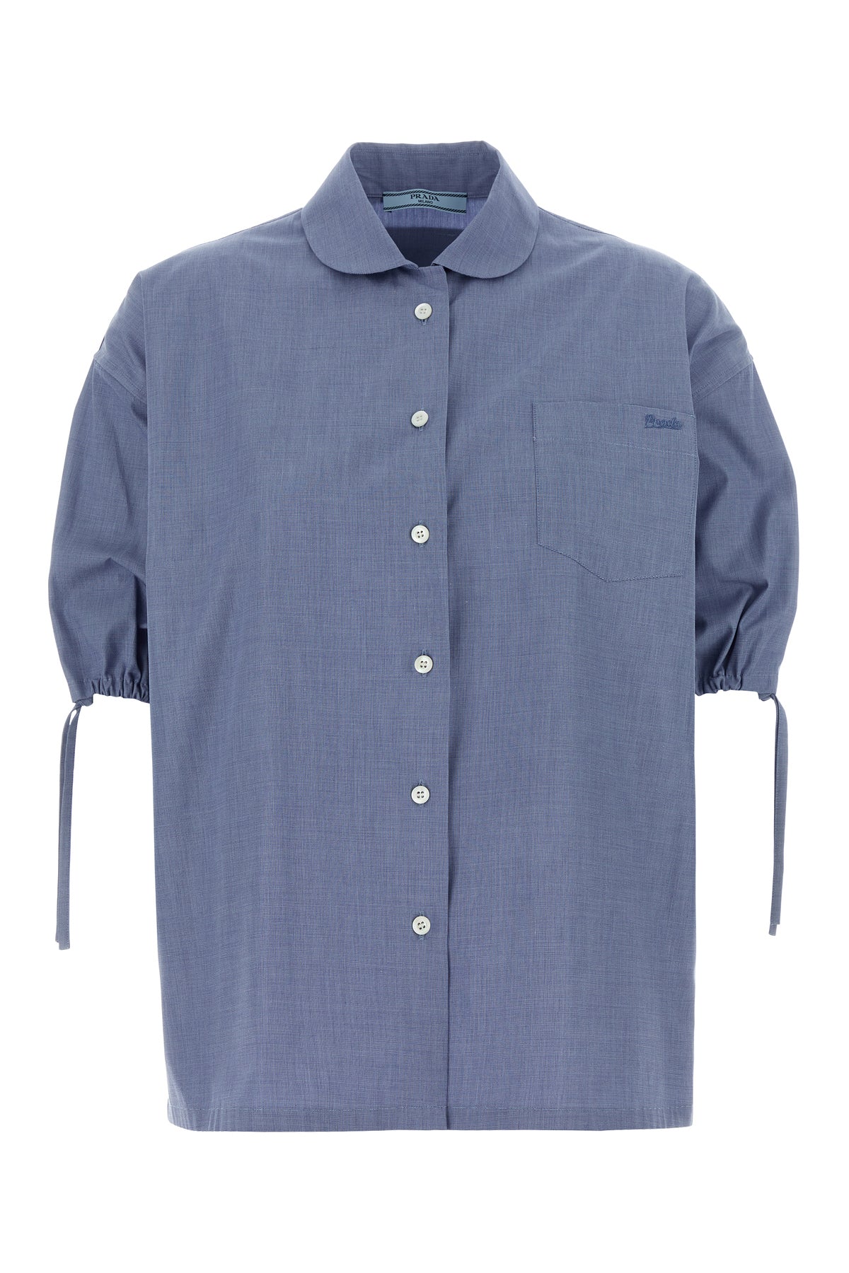 Short-sleeve shirt realized in pure cotton characterized by tonal embroidered logo on the chest enriched by tonal iconic triangle at the back.