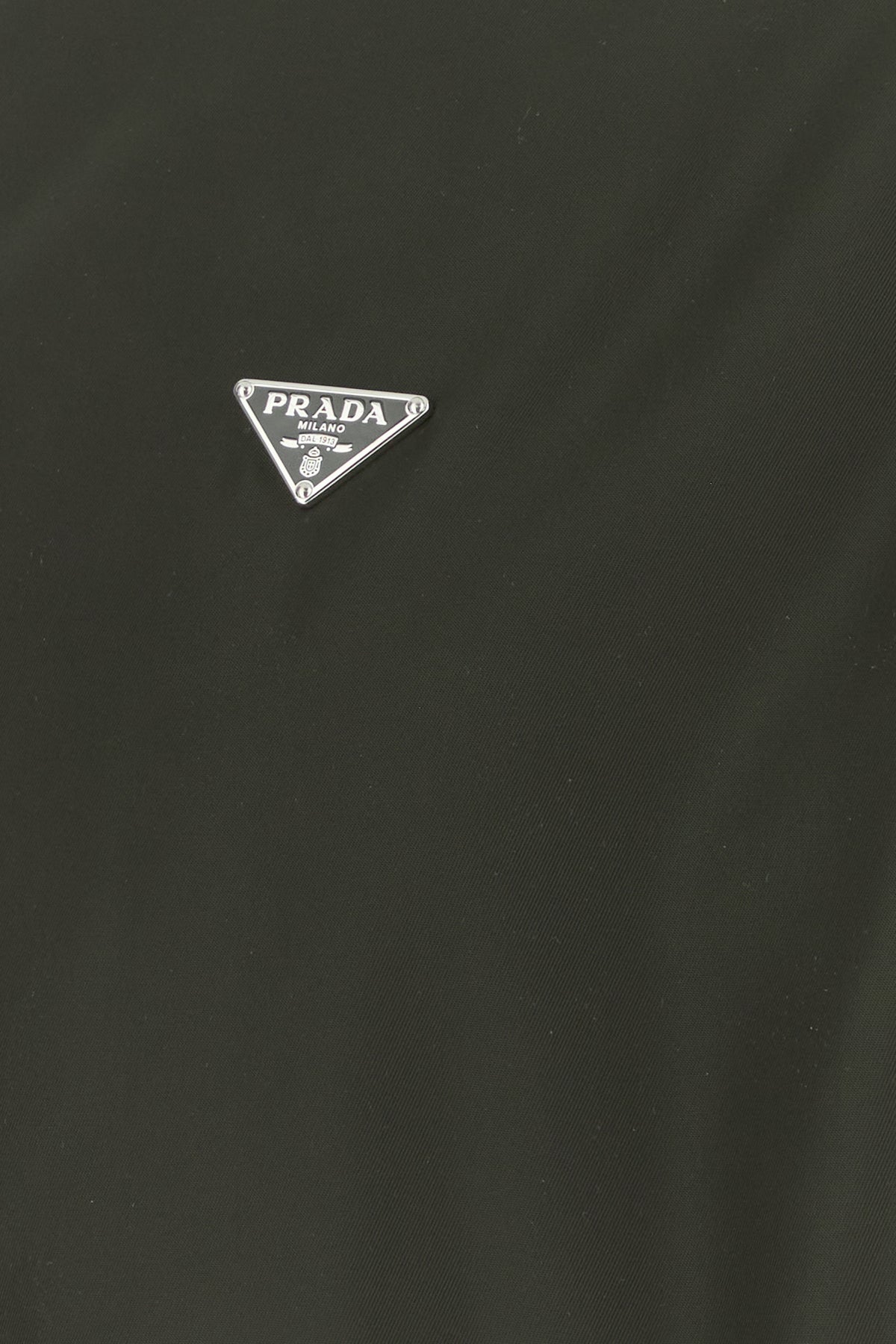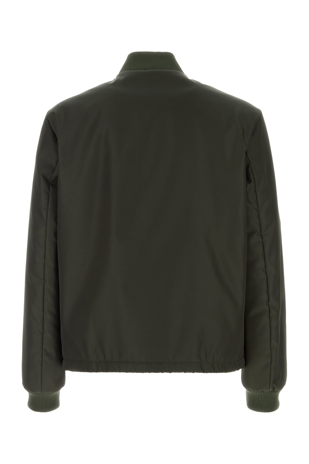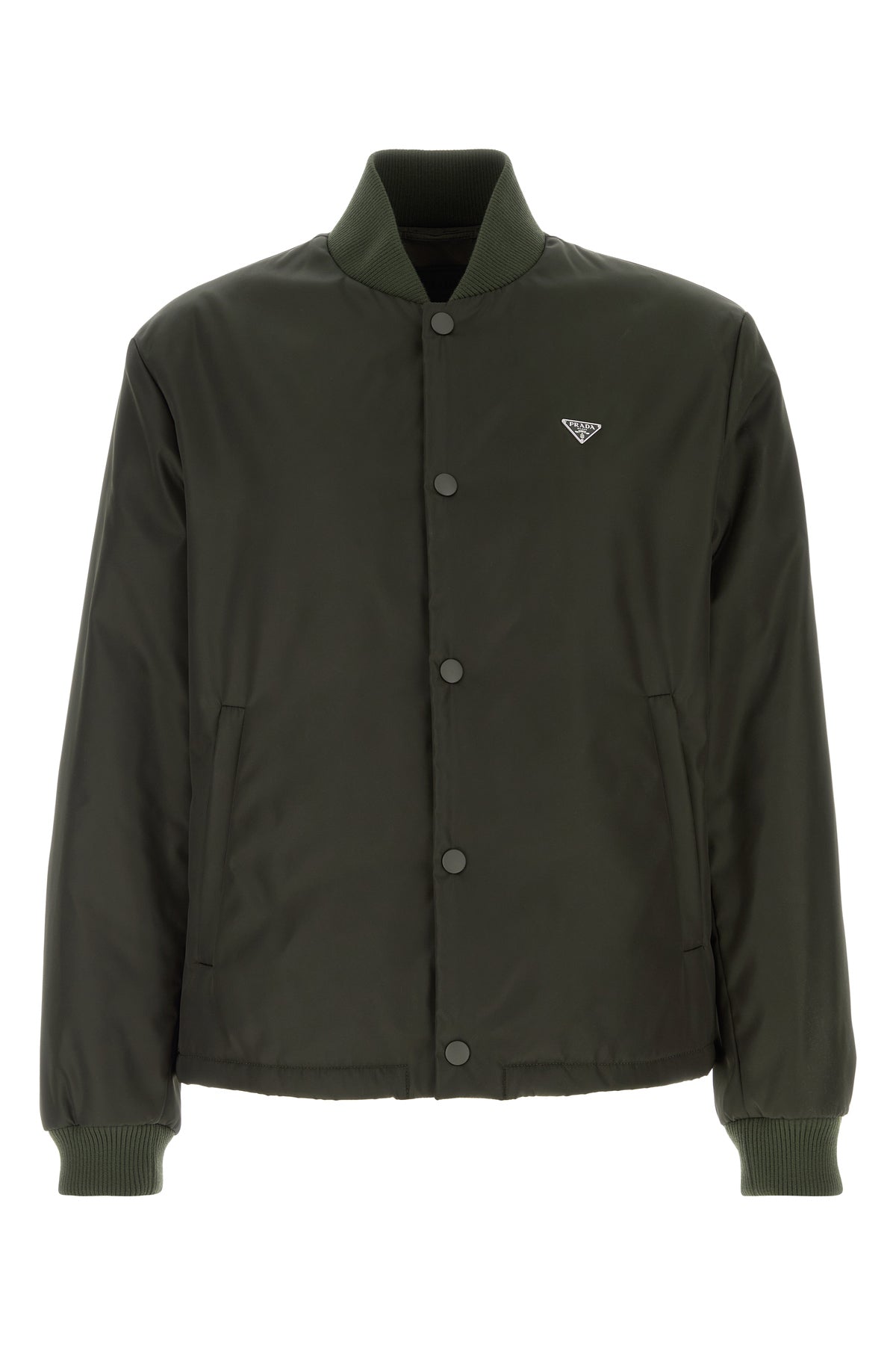 Bomber jacket realized in nylon enriched by iconic logoed metal triangle on the chest.