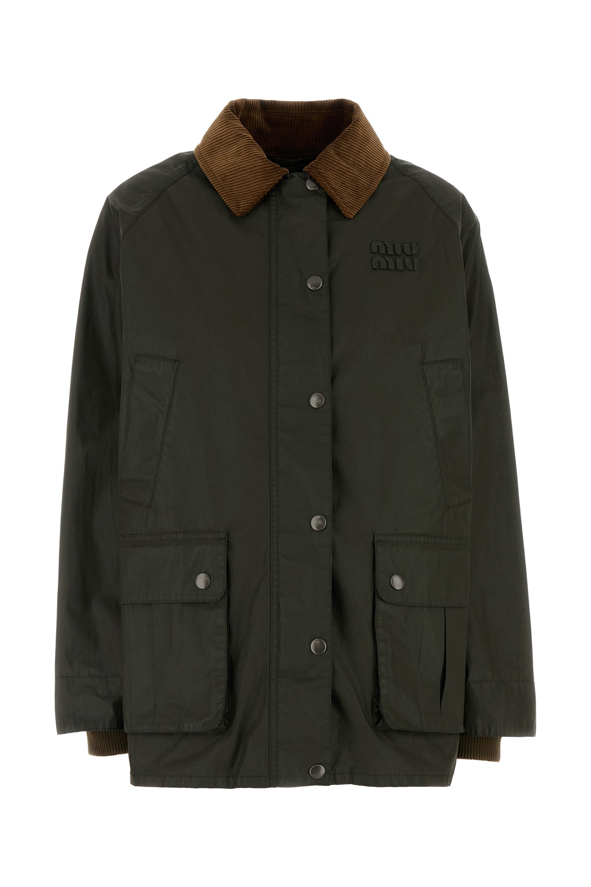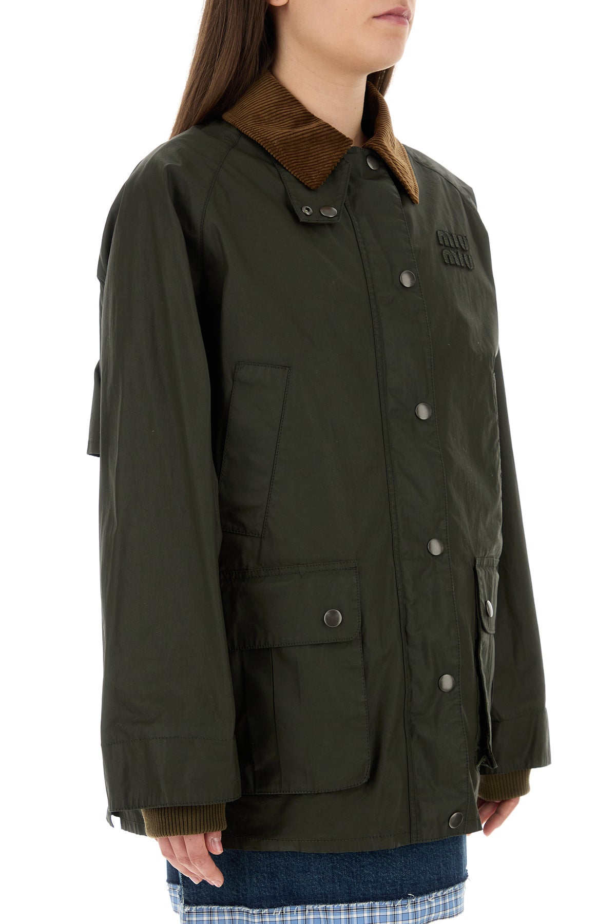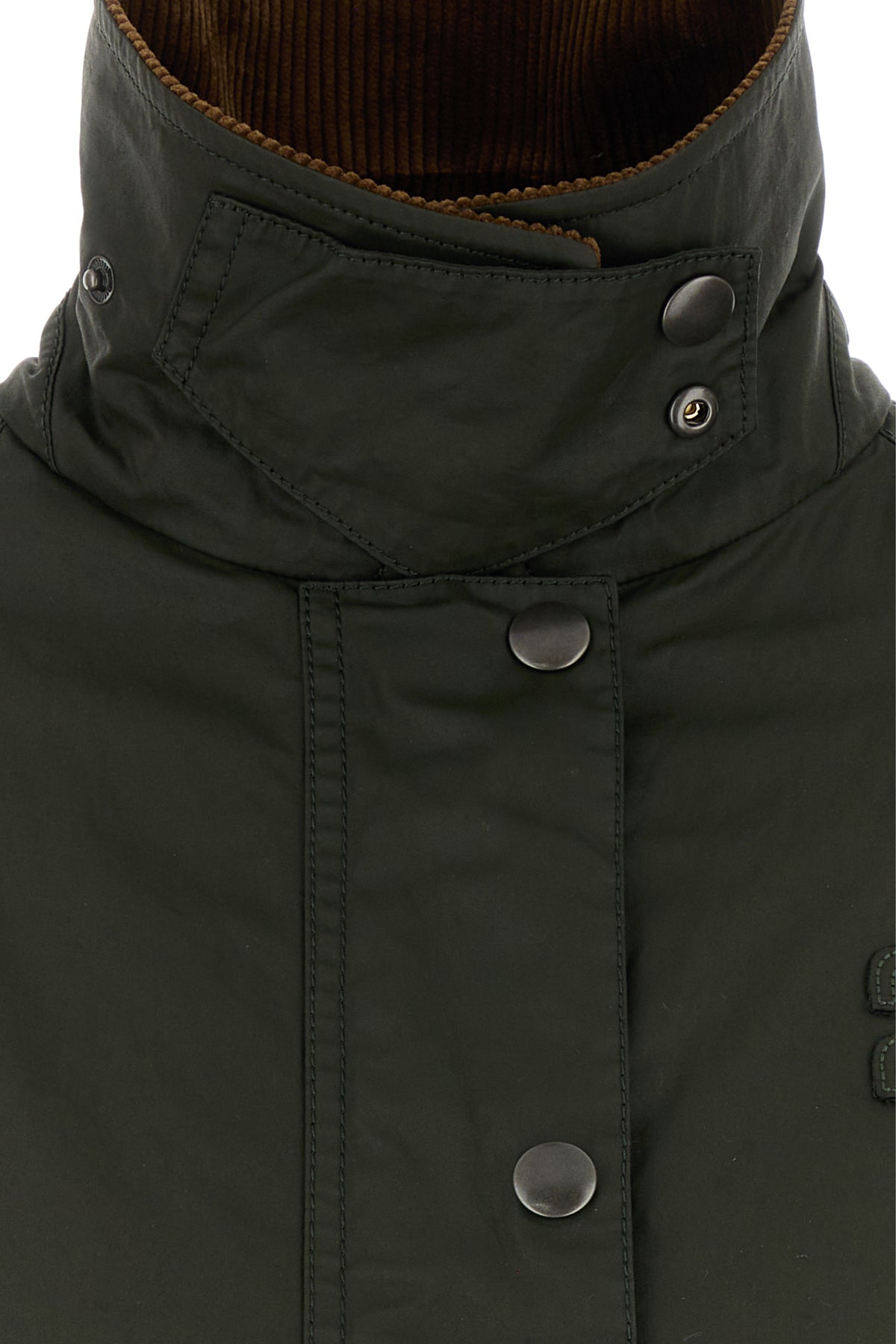 Jacket realized in coated pure cotton poplin enriched by tonal fabric logoed patch on the chest.