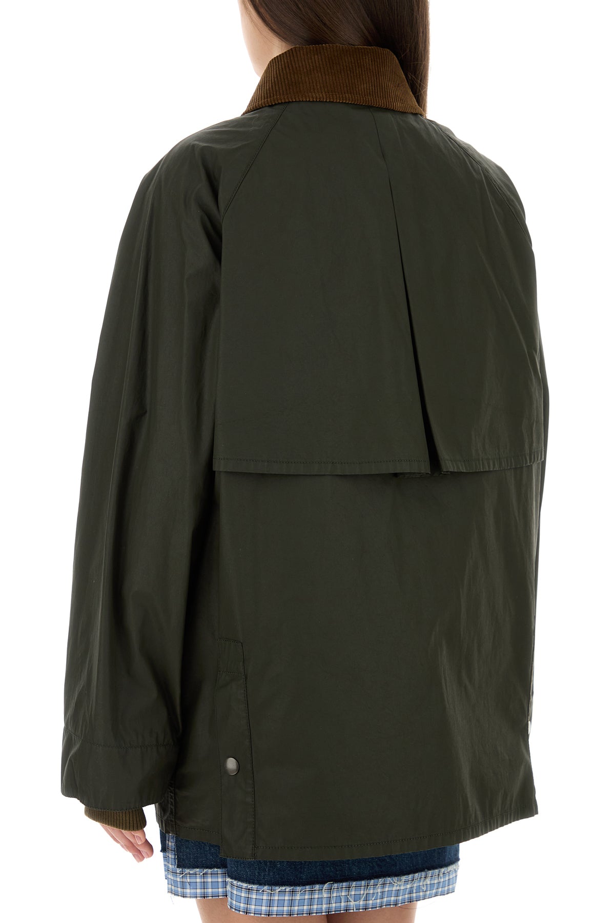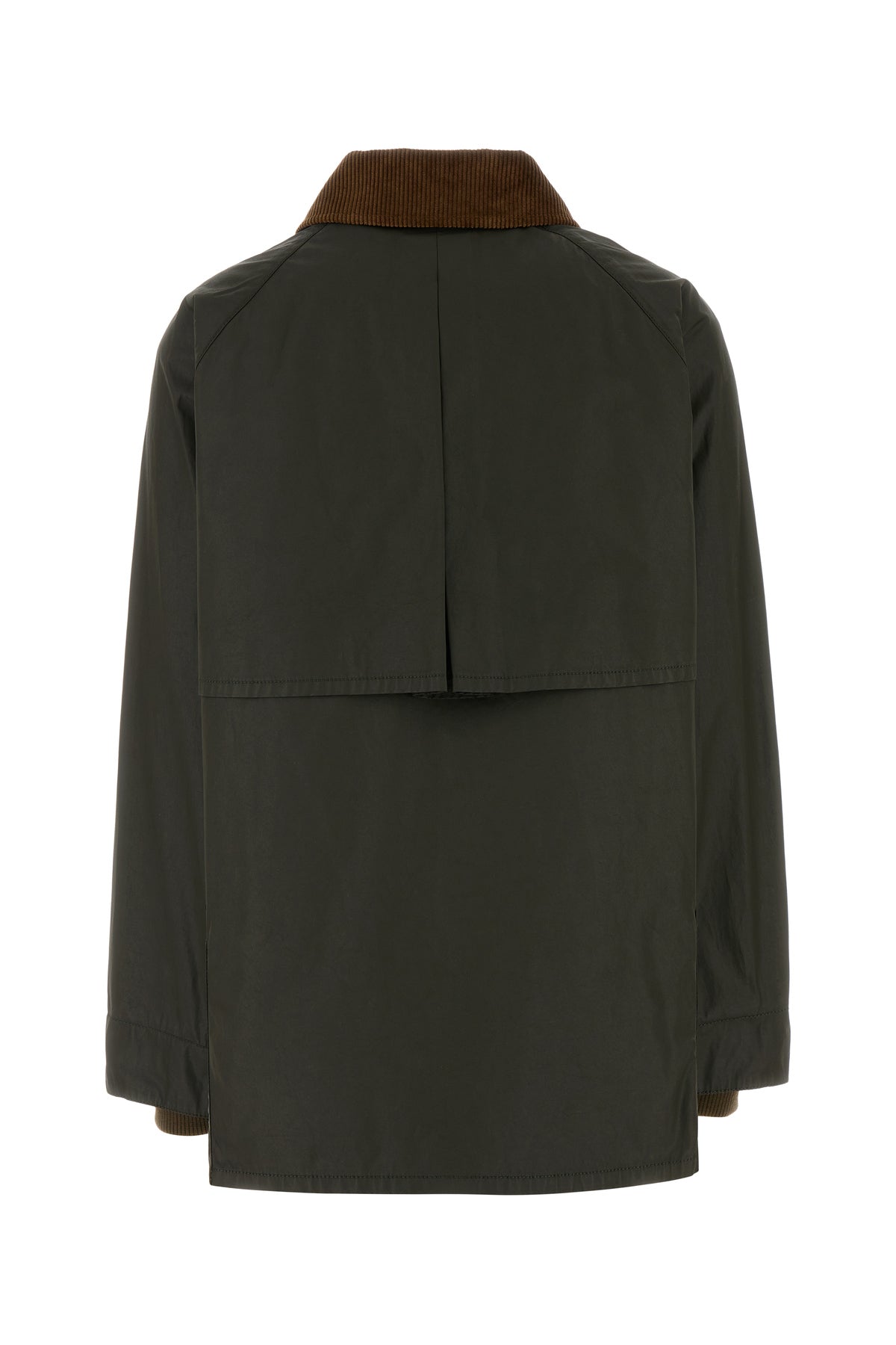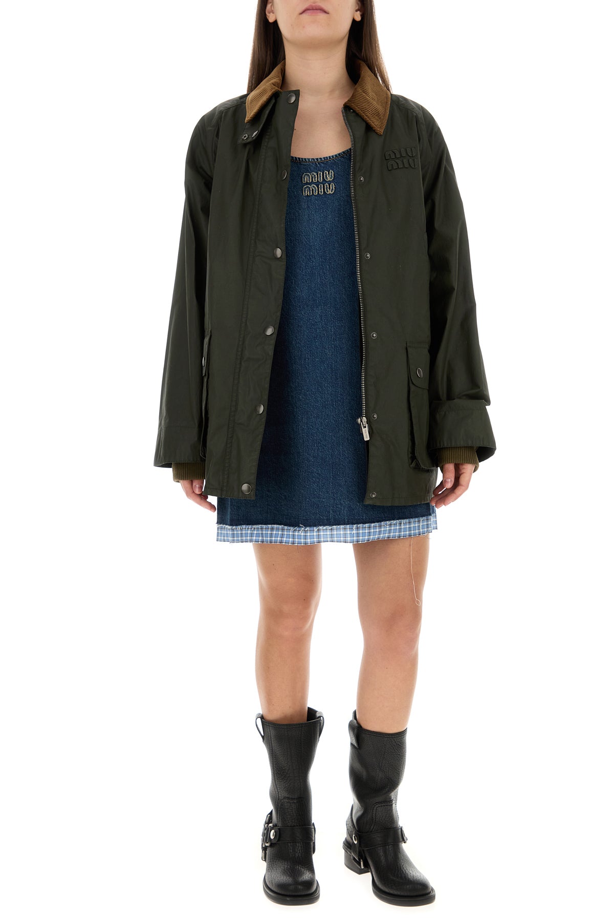 Jacket realized in coated pure cotton poplin enriched by tonal fabric logoed patch on the chest.