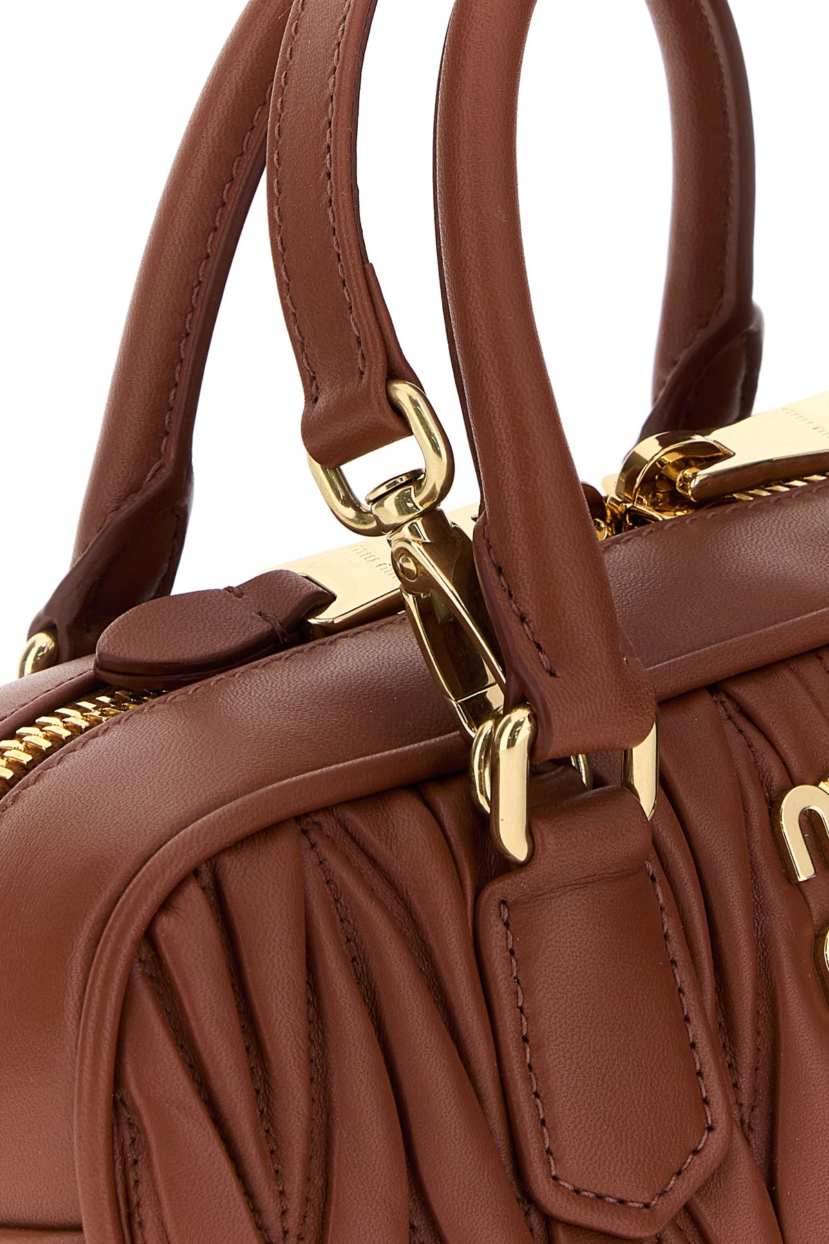 Handbag realized in matelassé leather and smooth leather enriched by tonal metal lettering logo at the front and detachable tonal leather accessory.