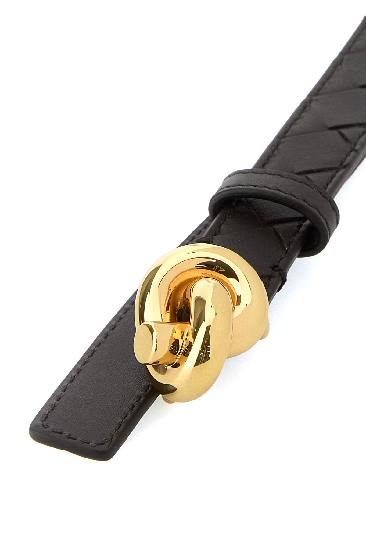 Belt realized in calf leather characterized by iconic Intrecciato motif on the entire surface enriched by Knot metal detail.