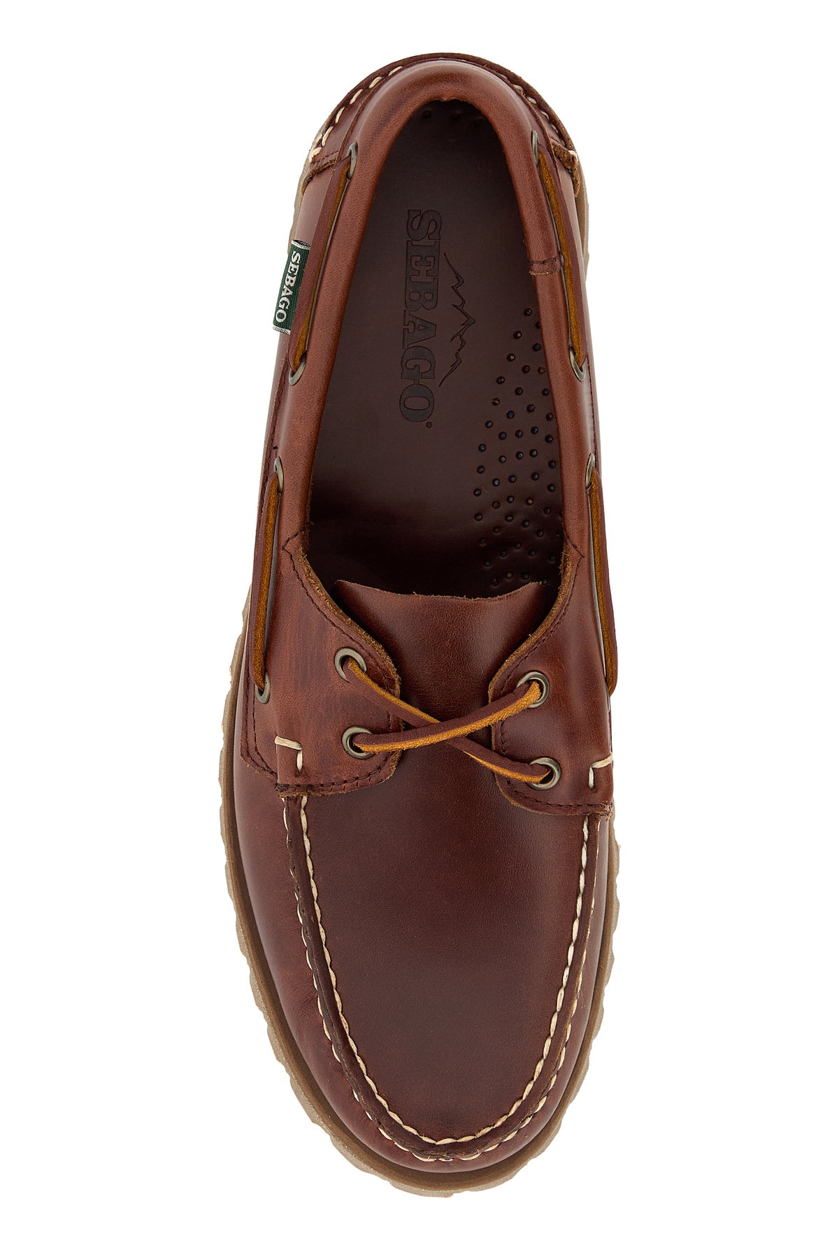 Loafers realized in vintage-effect leather enriched by logoed label on the side.