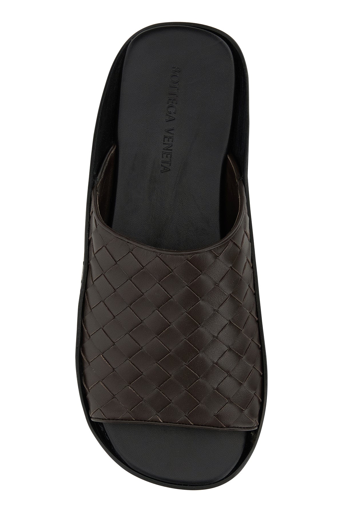 Slippers realized in lamb leather characterized by iconic Intrecciato motif on the entire surface.