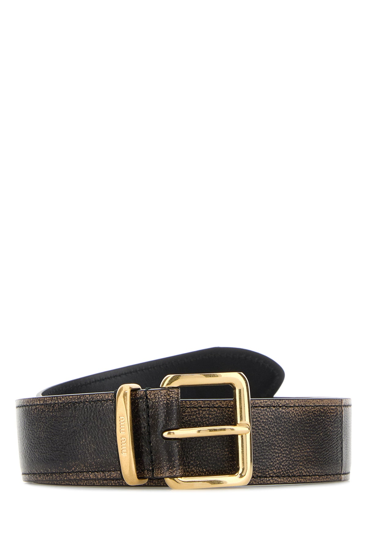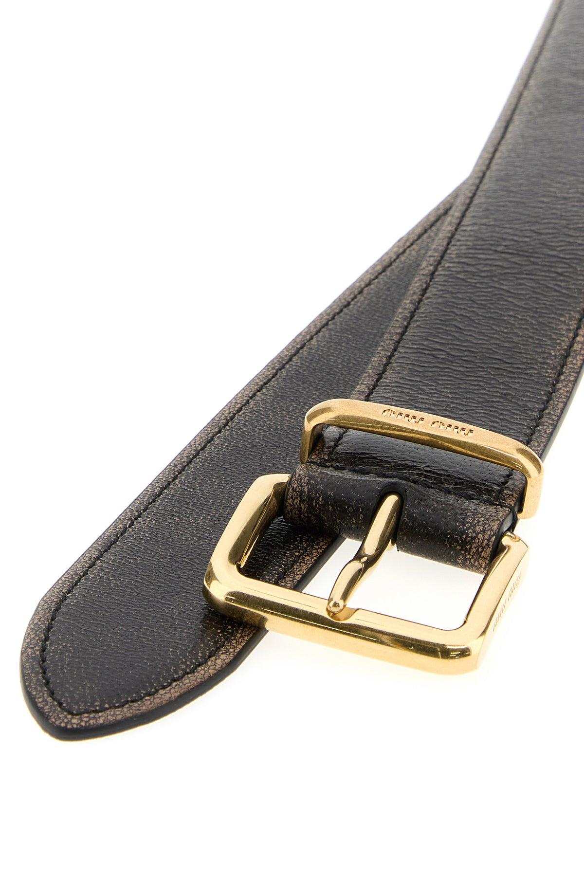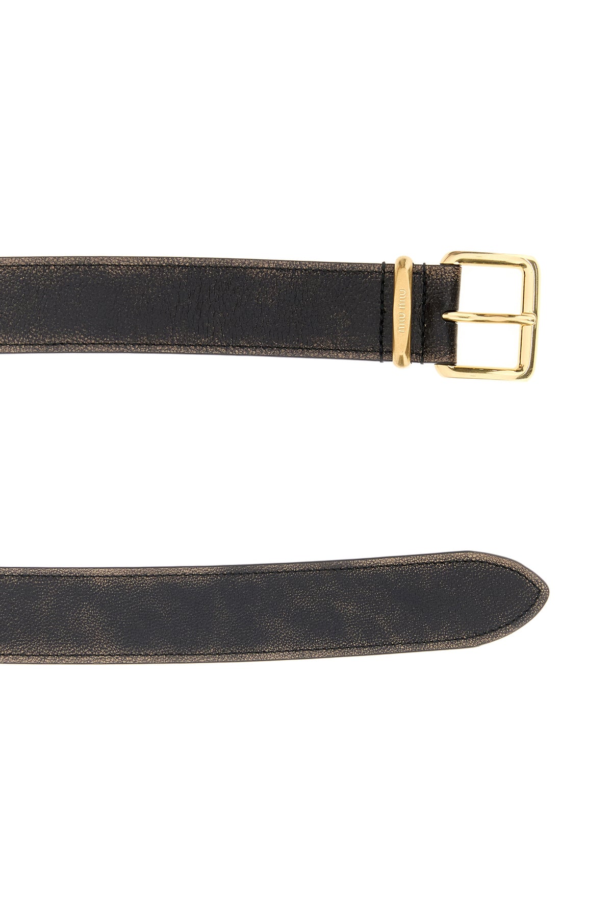 Belt realized in vintage-effect nappa leather characterized by embossed logo on the belt keeper.