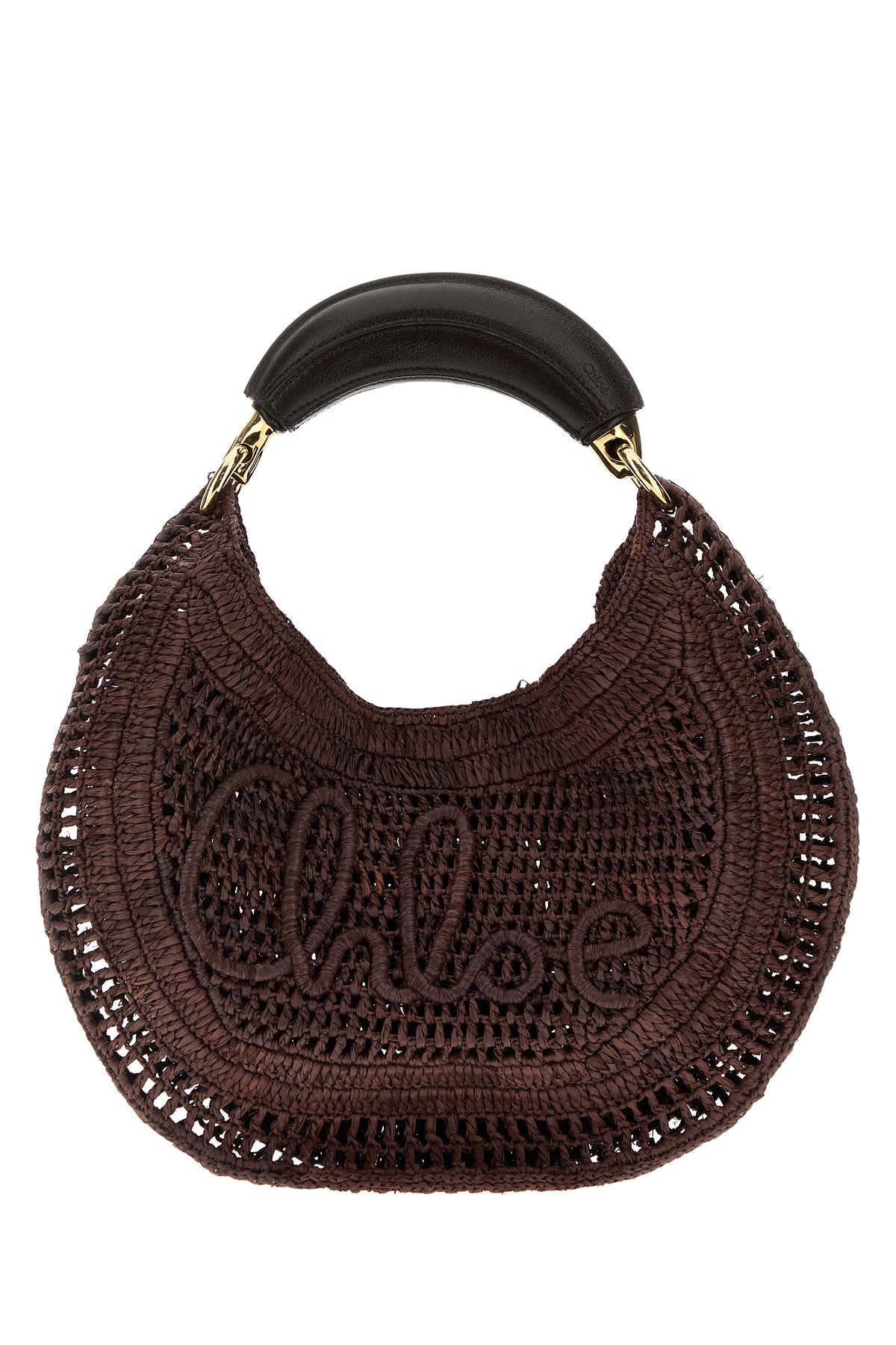Handbag realized in raffia characterized by tonal embroidered logo at the front.