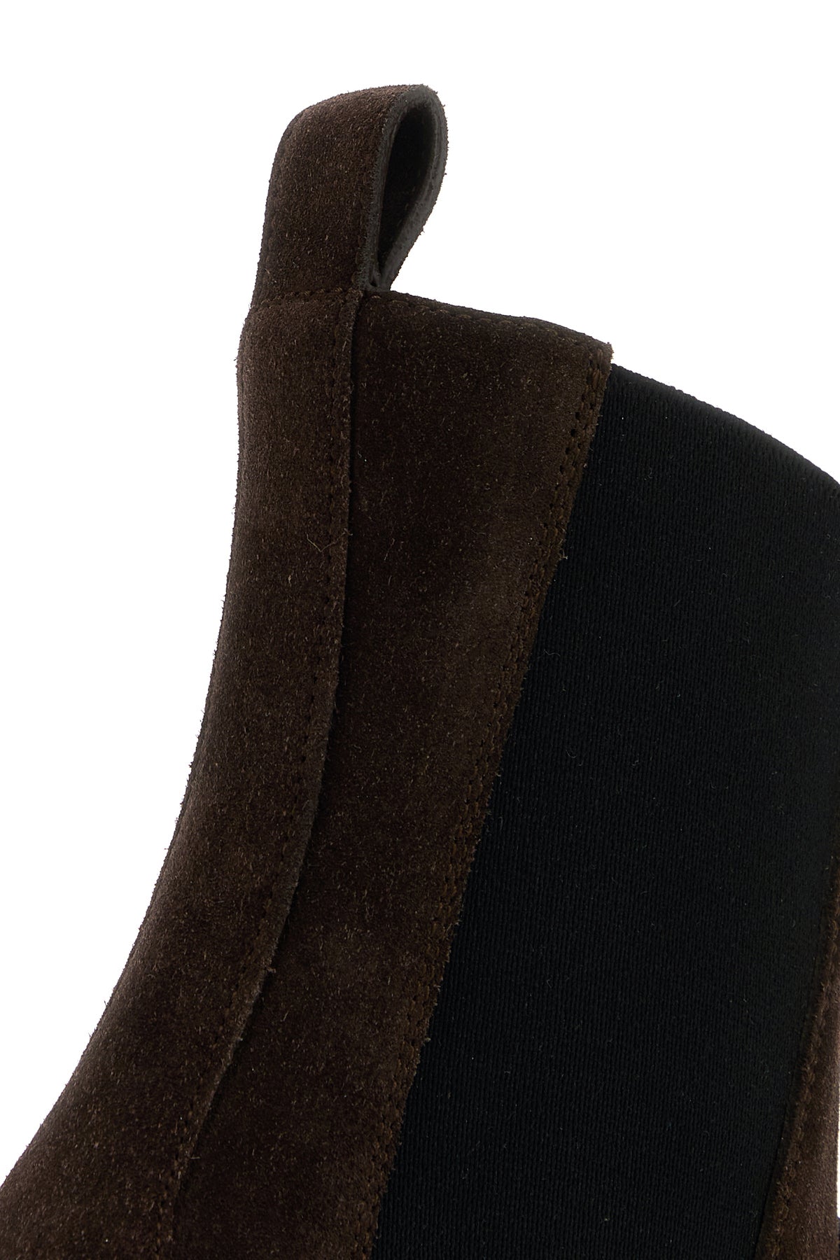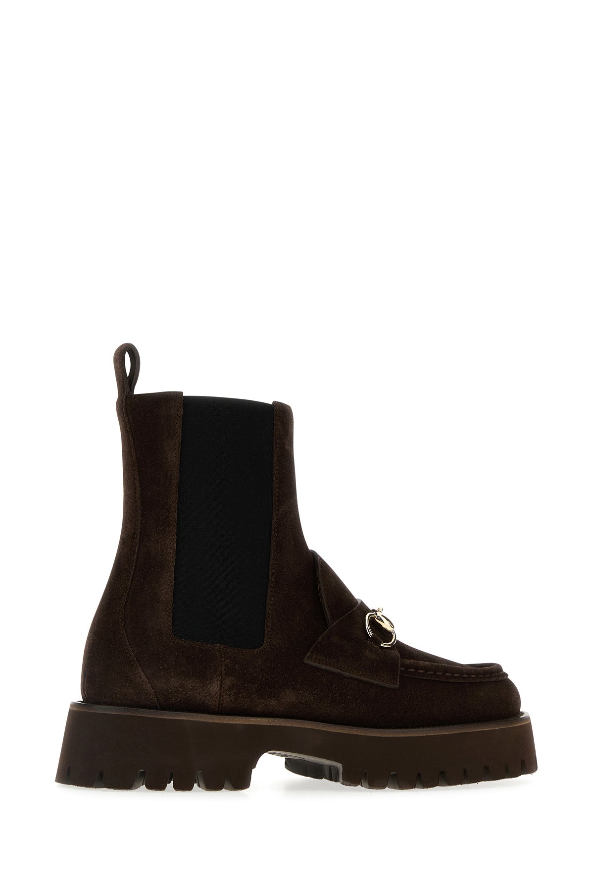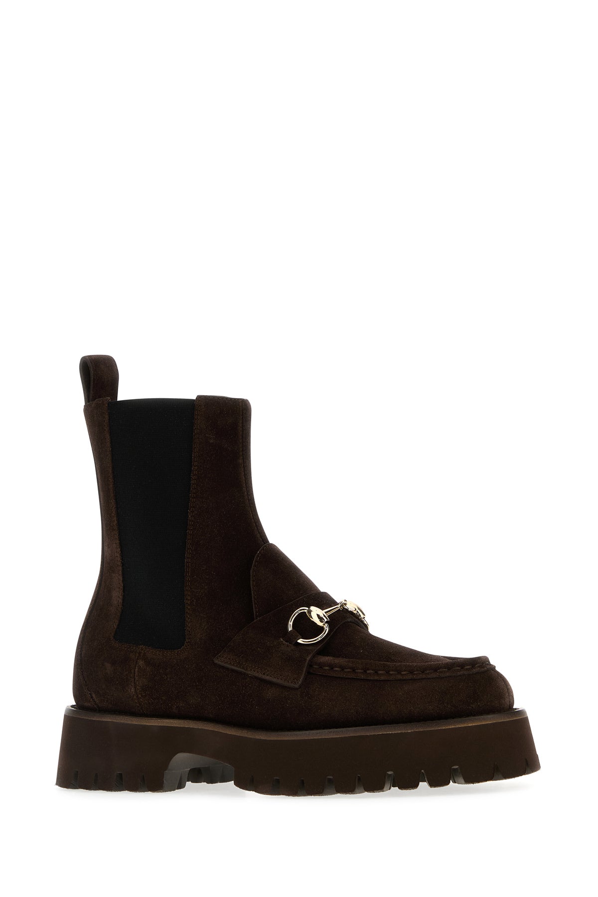 Ankle boots realized in suede enriched by Horsebit metal detail on the camp.