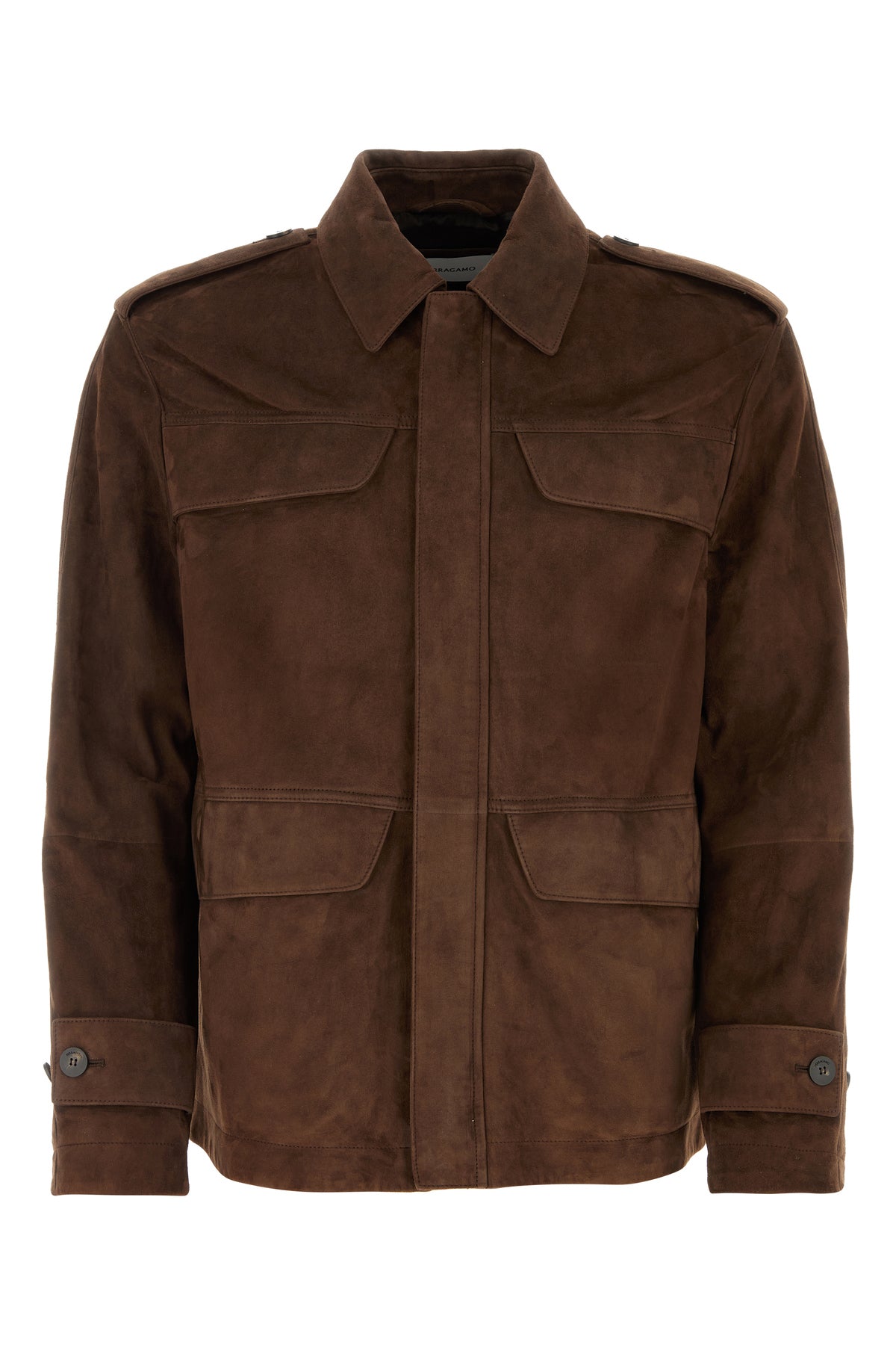 Jacket realized in lamb suede characterized by Gancini motif in relief at the back.
