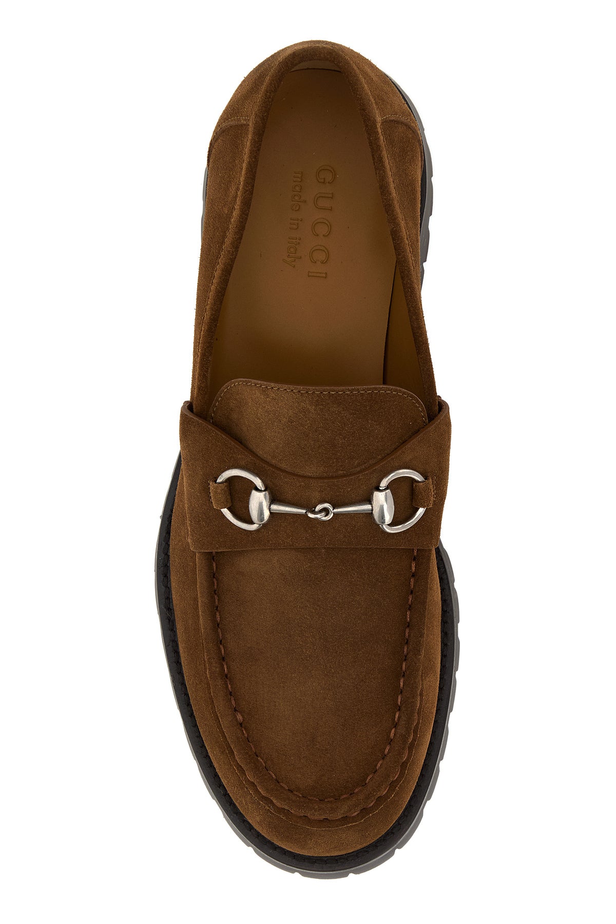 Loafers realized in suede enriched by Horsebit metal detail on the vamp.