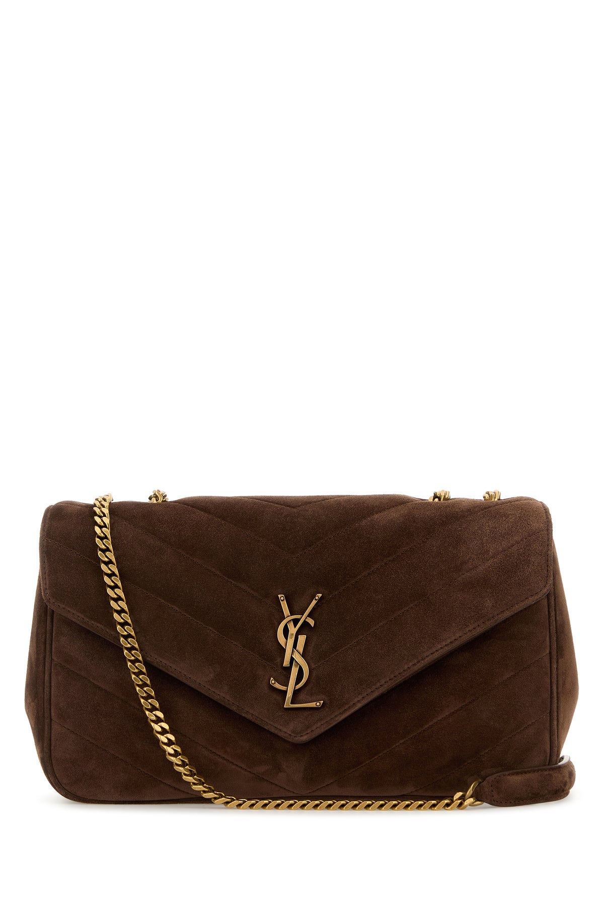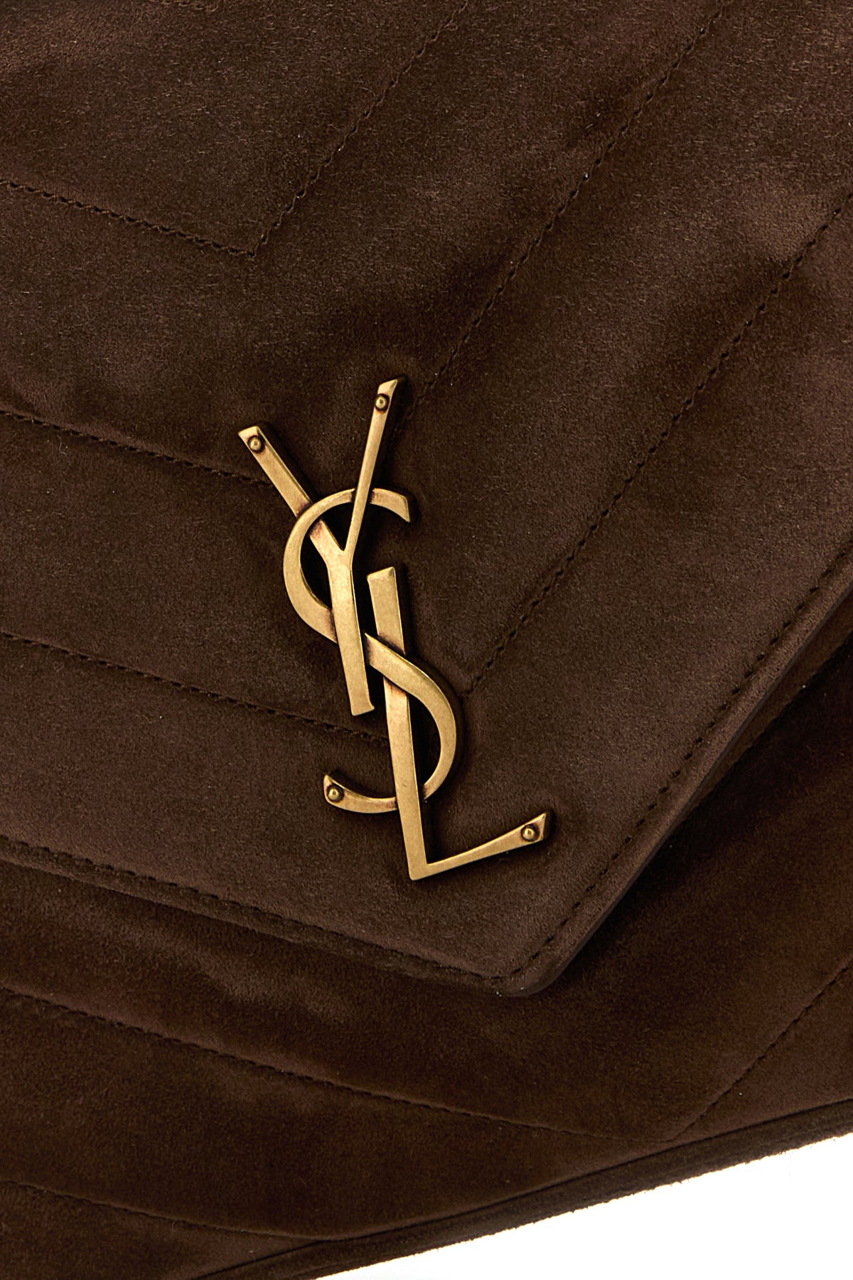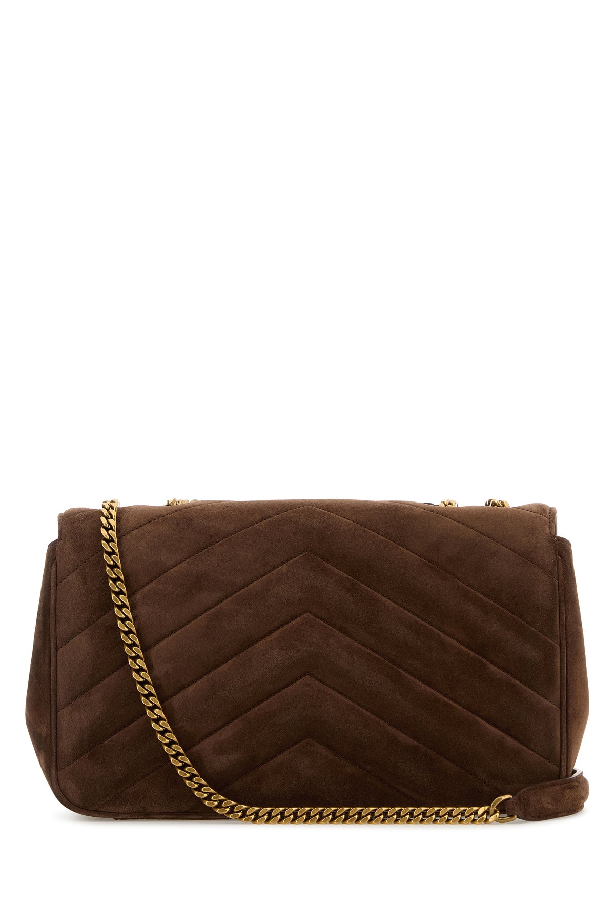Shoulder bag realized in chevron motif calf suede enriched by iconic Monogram metal detail at the front.