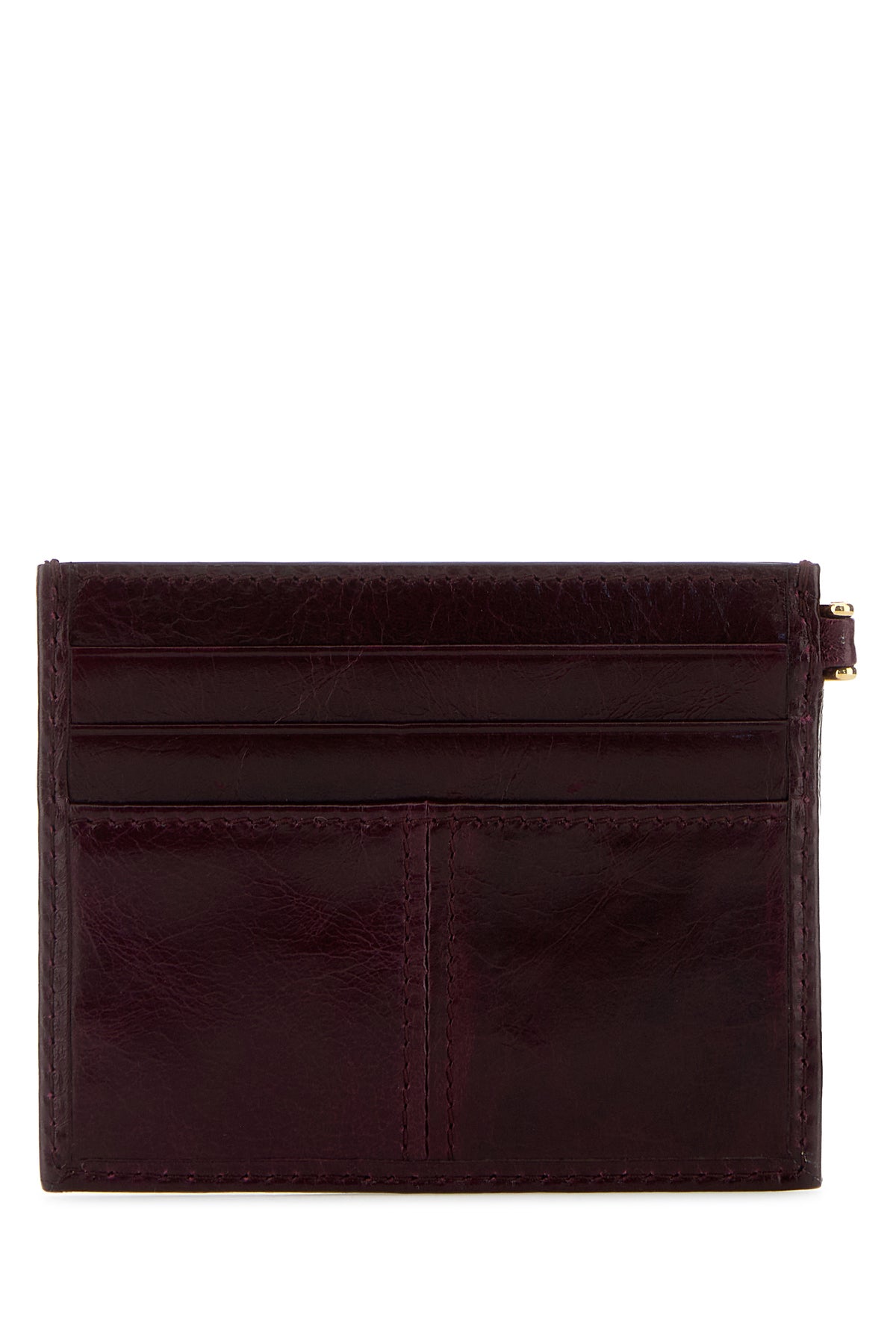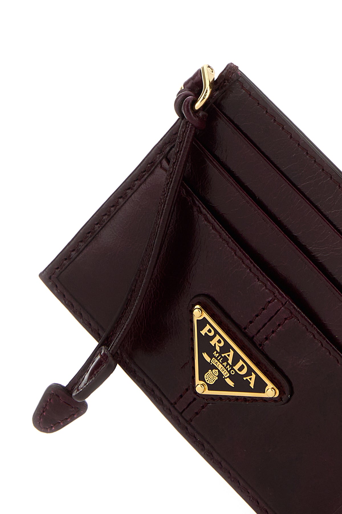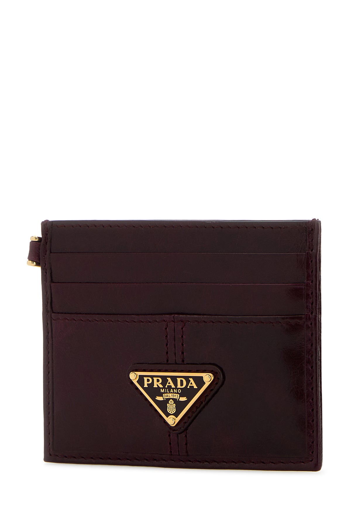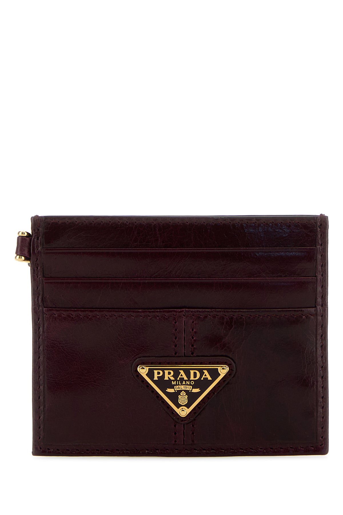 Card holder realized in polished-finish creased-effect leather enriched by iconic logoed triangle at the front.