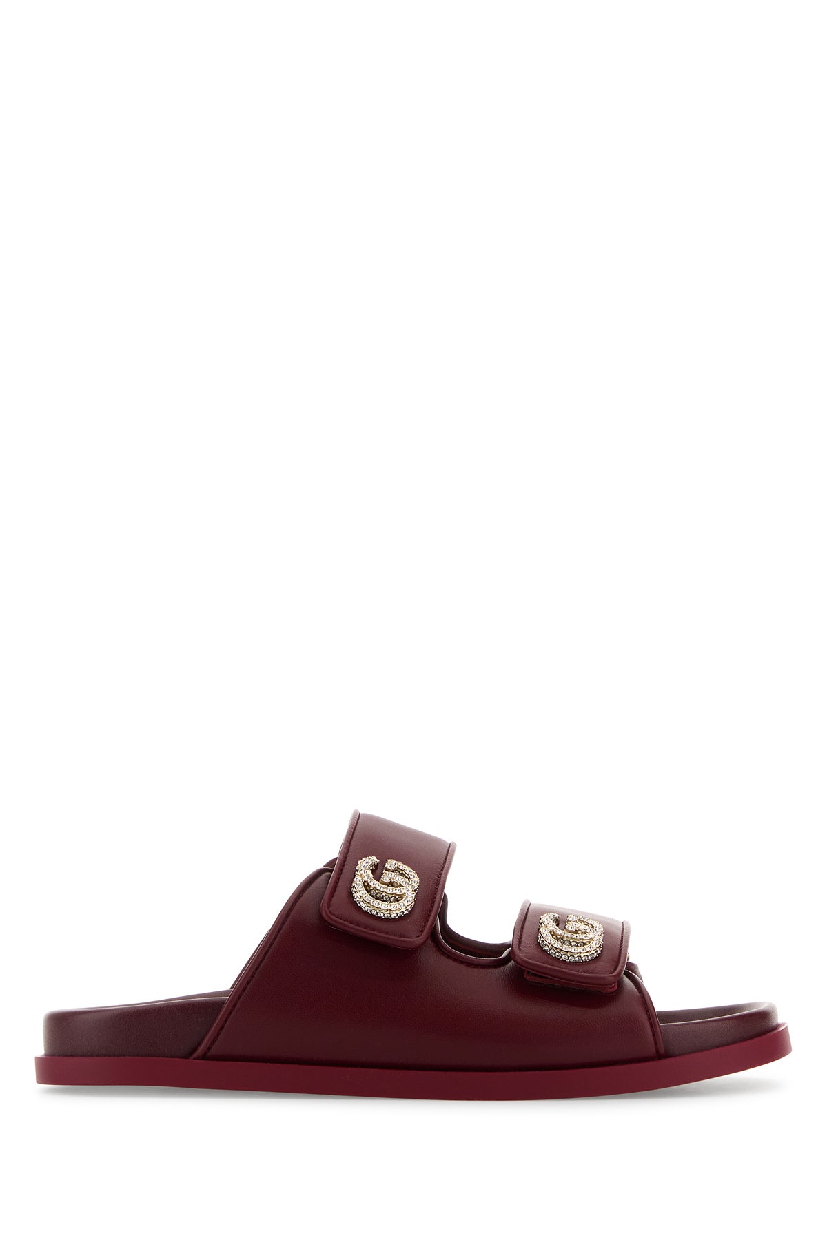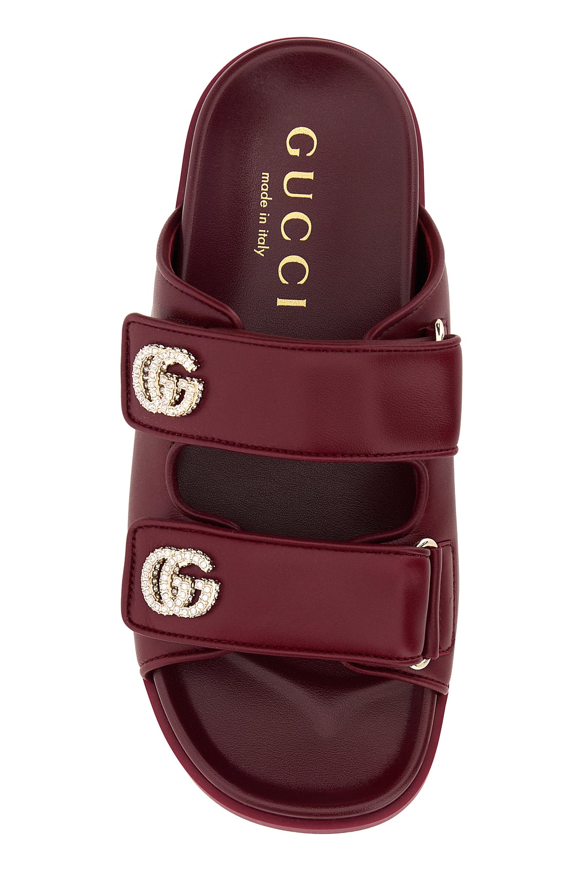 Slippers realized in smooth leather enriched by GG metal detail with rhinestones on the instep.