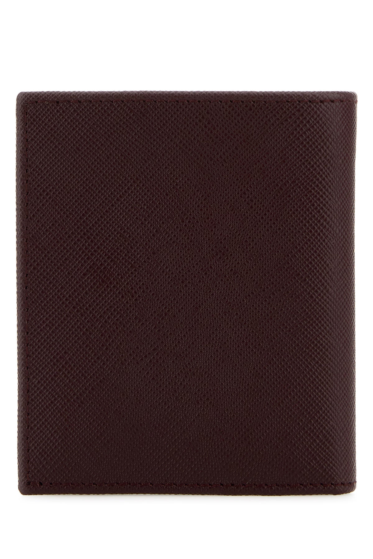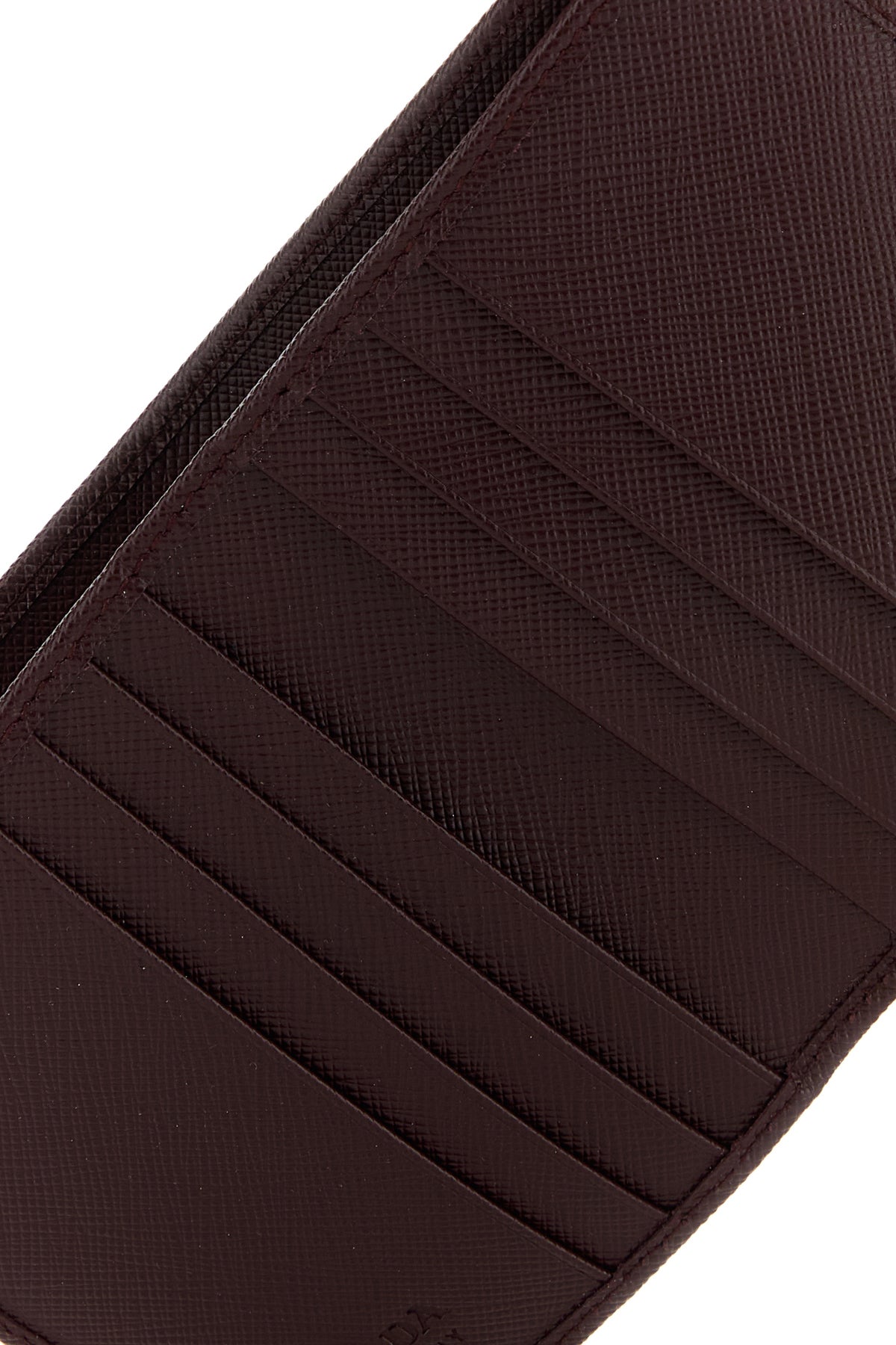 Wallet realized in Saffiano leather enriched by iconic logoed triangle at the front.