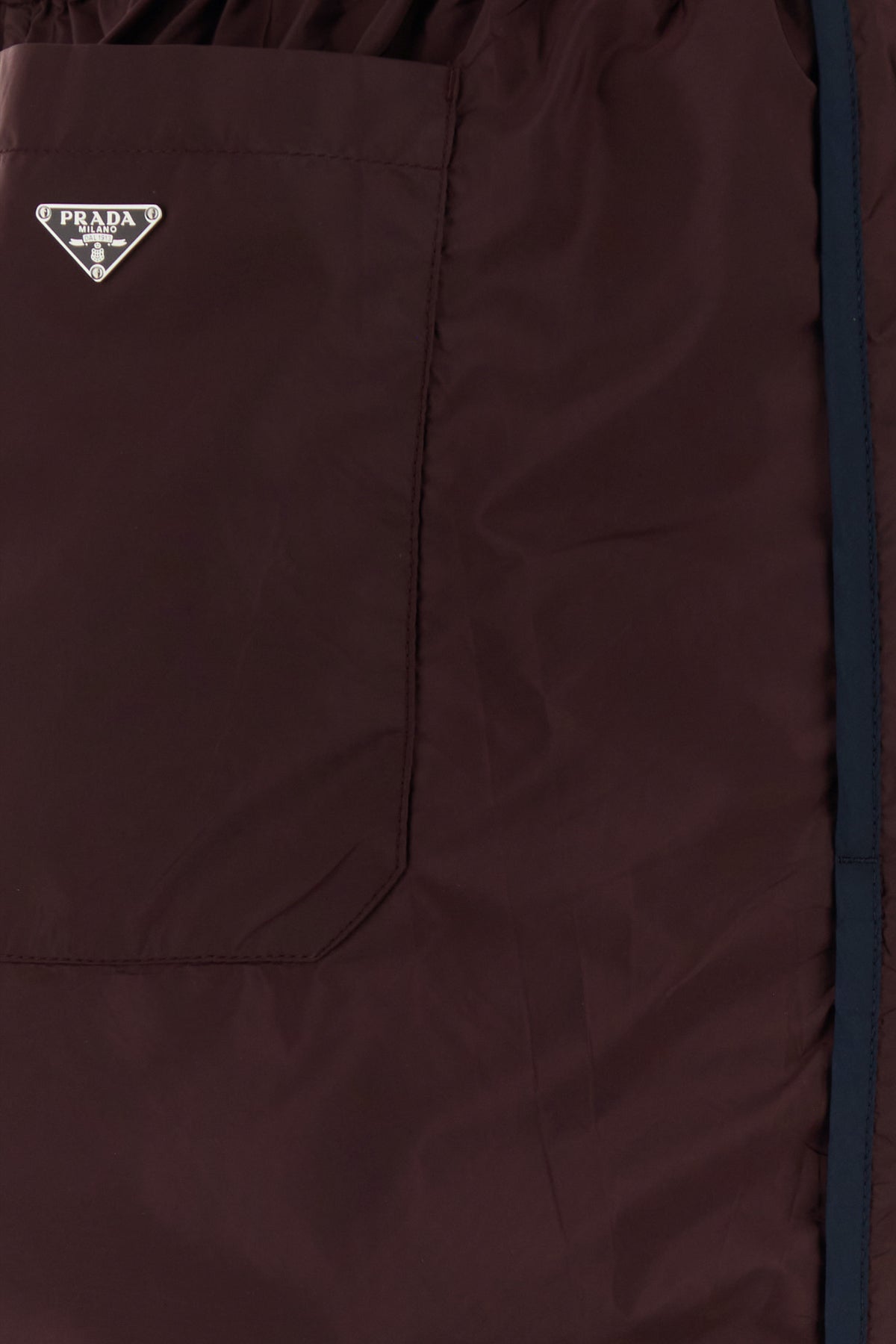 Pant realized in Re-Nylon with contrasting bands on the sides enriched by metal iconic logoed triangle at the back.