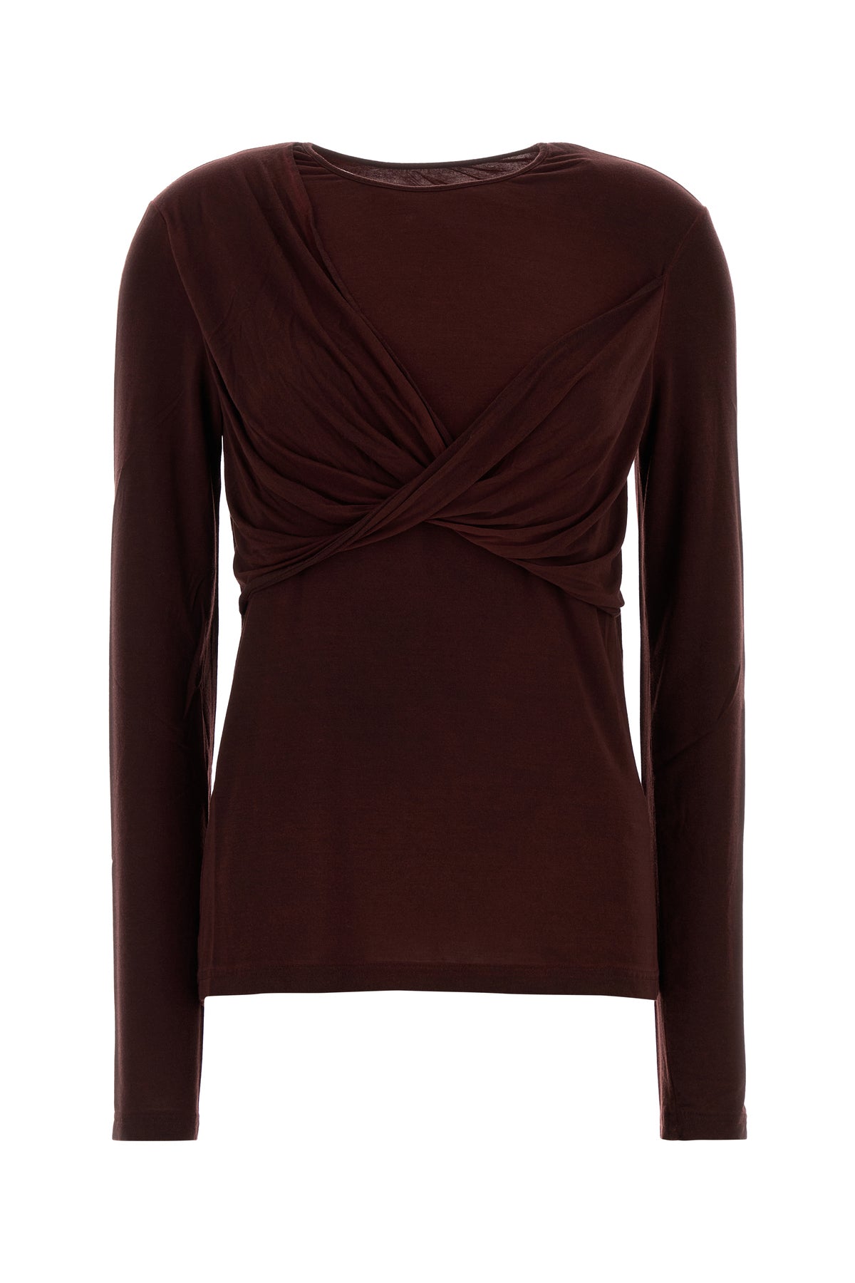 Long-sleeves t-shirt realized in stretch modal with tonal fabric insert on the chest.