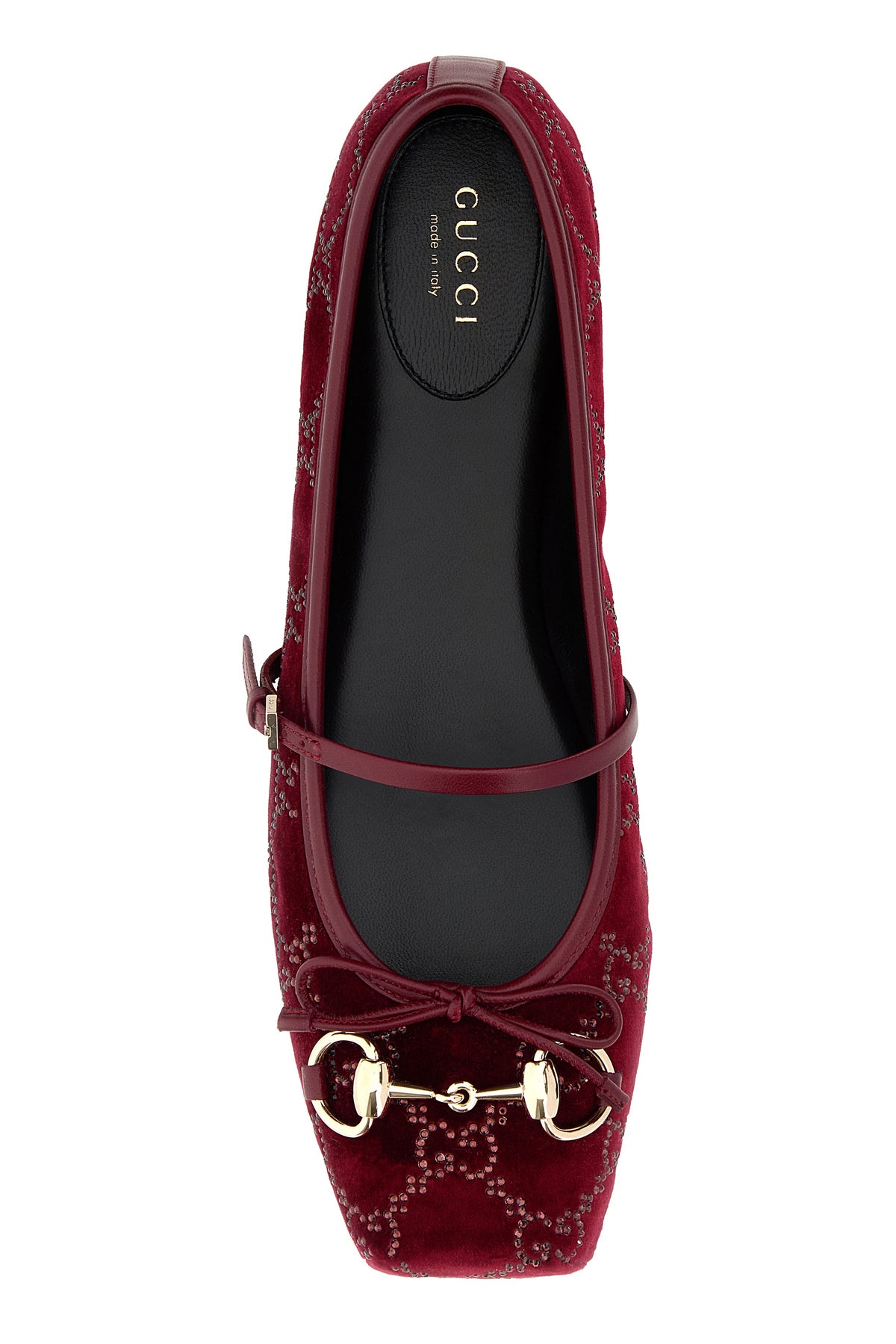 Ballerinas realized in velvet characterized by rhinestones GG motif on the entire surface enriched by Horsebit metal detail on the instep.