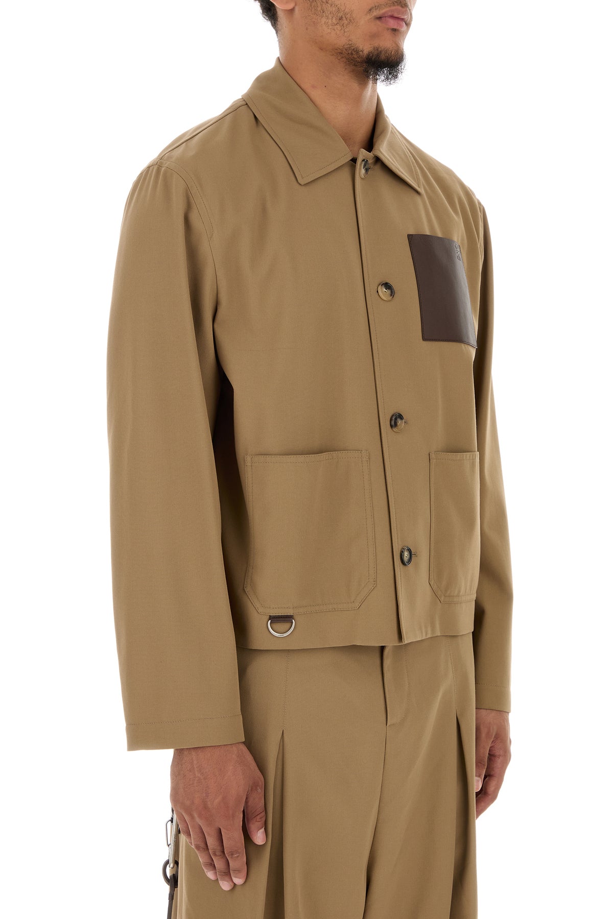 Jacket realized in pure cotton characterized by embossed Anagram motif on the leather chest pocket.
