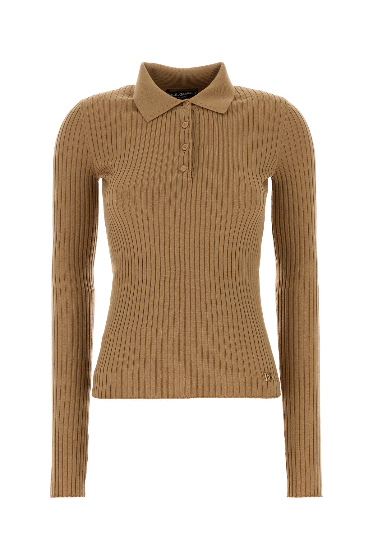 Long-sleeves polo shirt realized in virgin wool stretch enriched by DG metal detail on the hemline.
