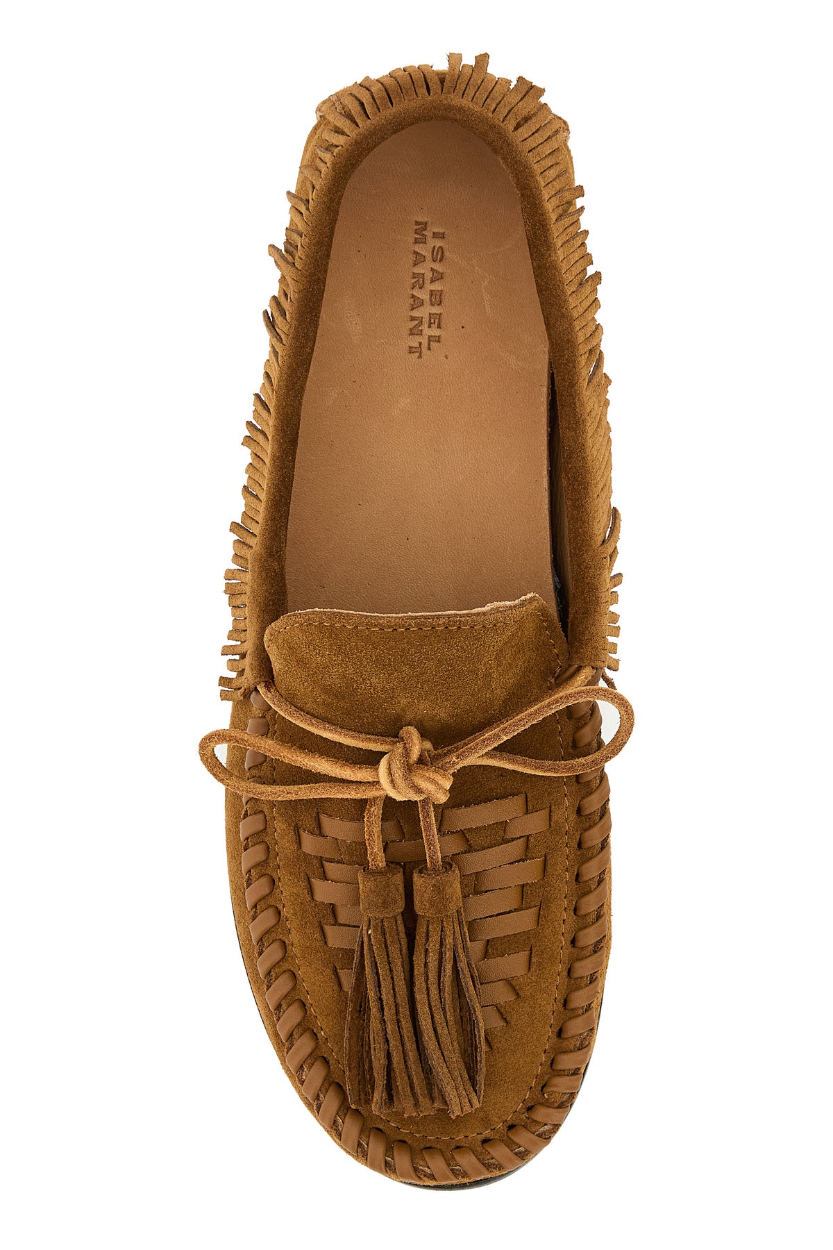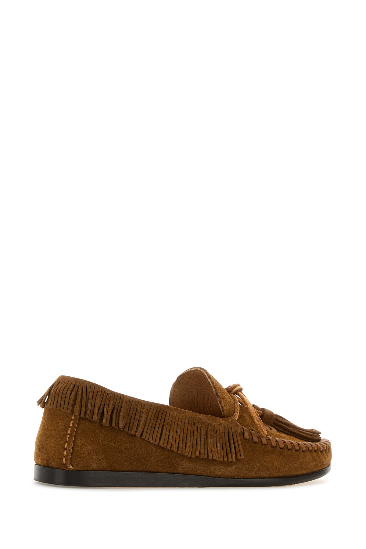 Loafers realized in suede characterized by fringes on the trimmings.