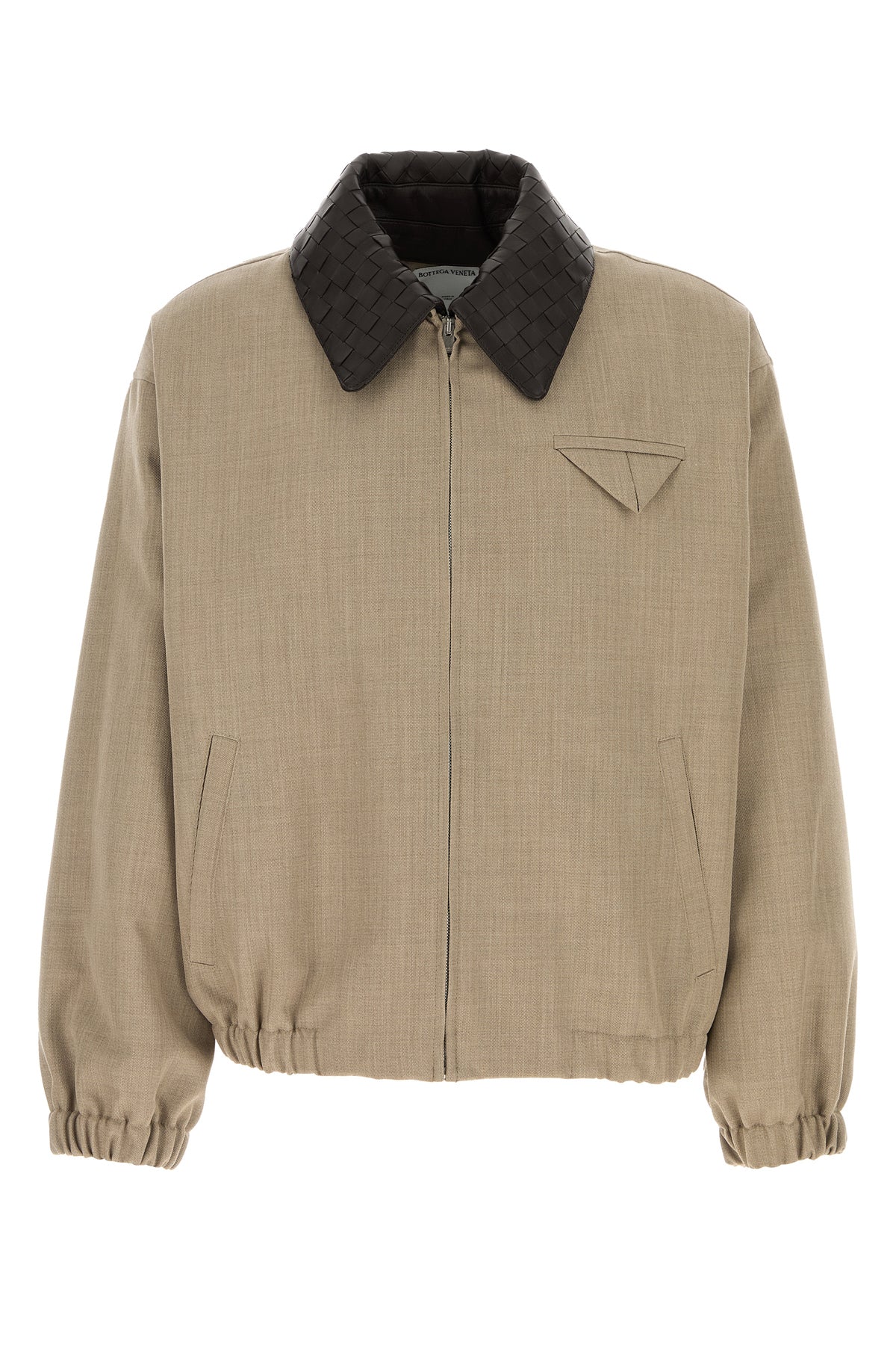 Bomber jacket realized in pure wool characterized by iconic Intrecciato motif on the detachable collar.