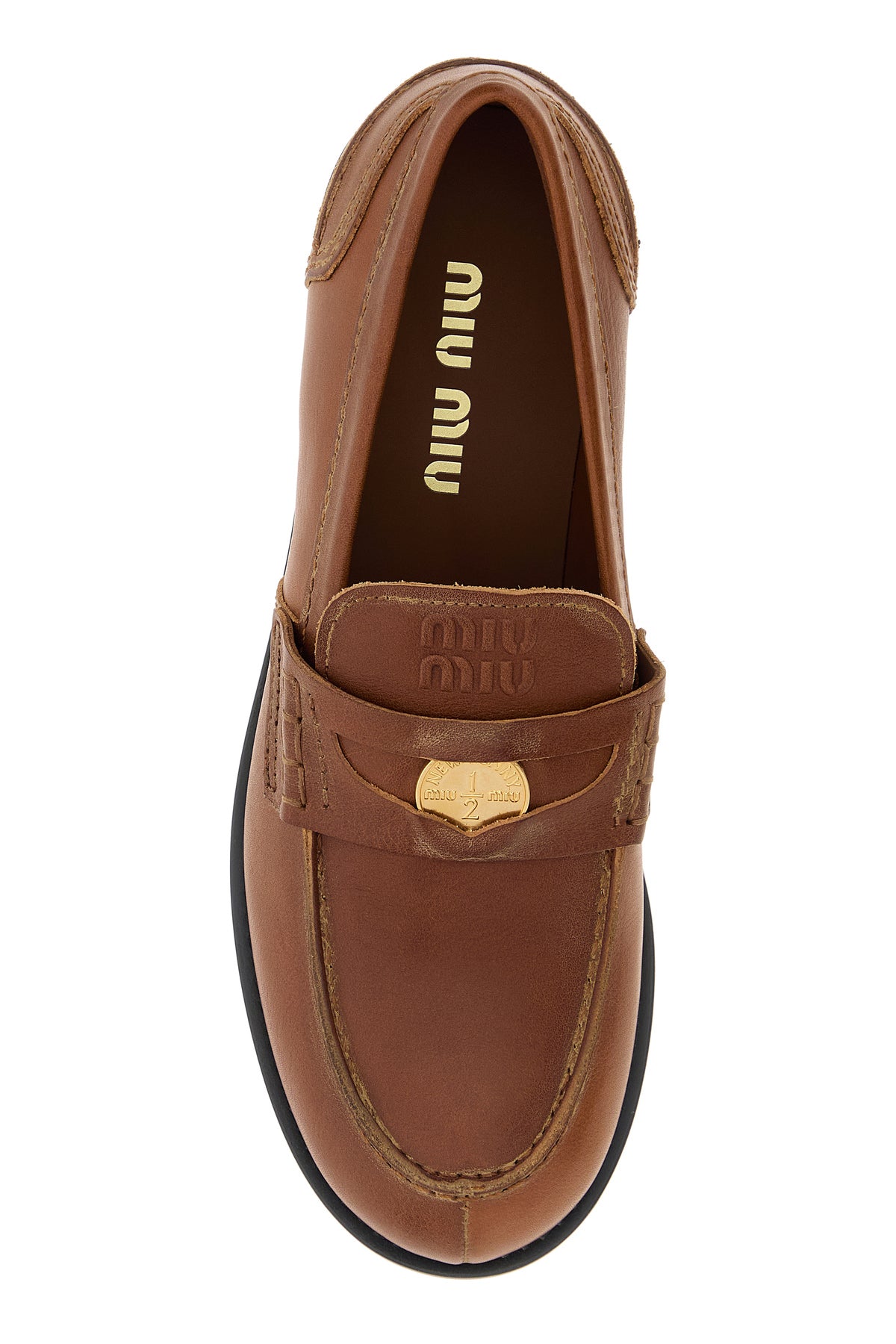 Loafers realized in vintage effect leather characterized by logo in relief on the instep enriched by logoed metal detail on the vamp.
