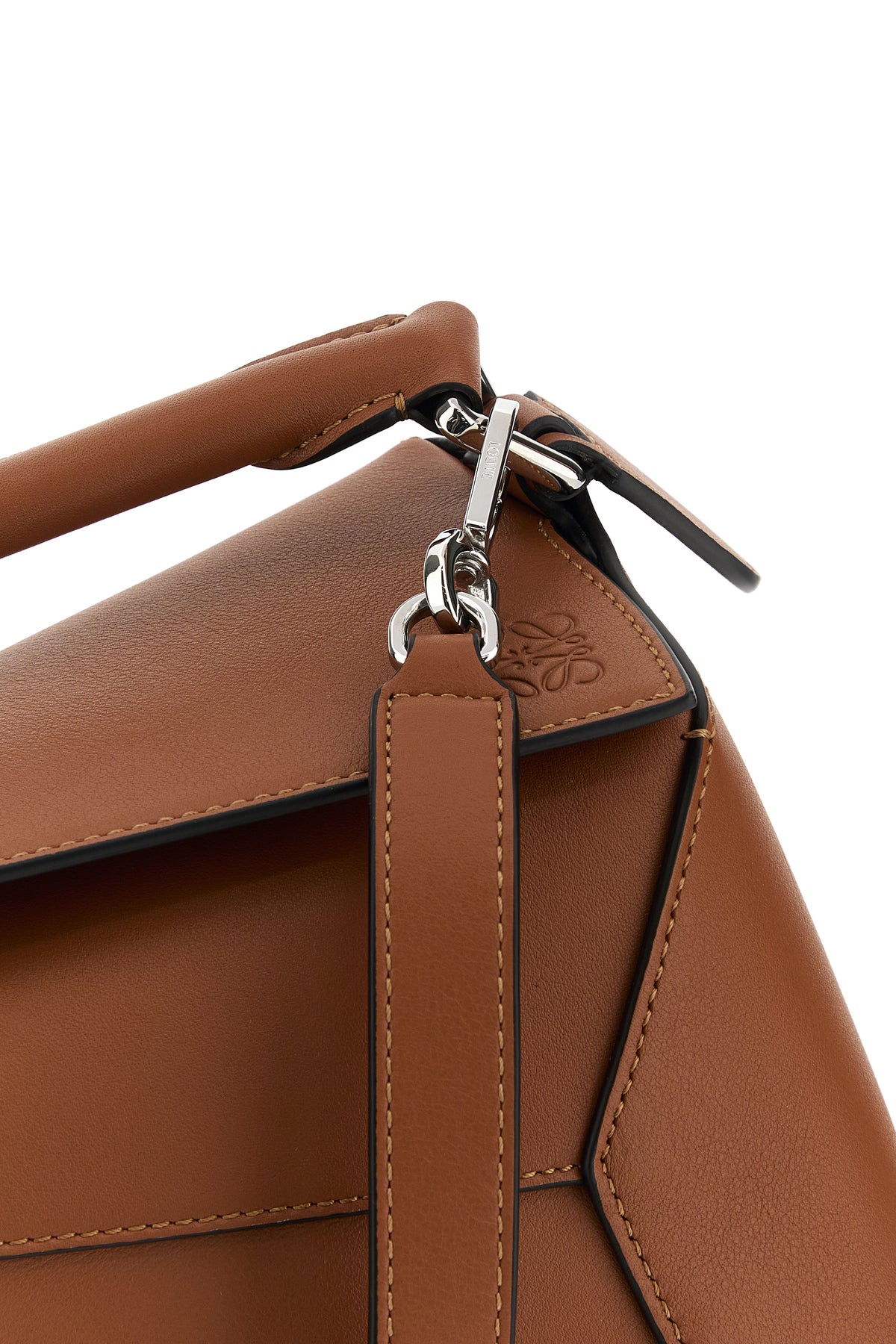 Handbag realized in calf pebble leather characterized by embossed Anagram motif on the flap and iconic geometric motif on the entire surface.
