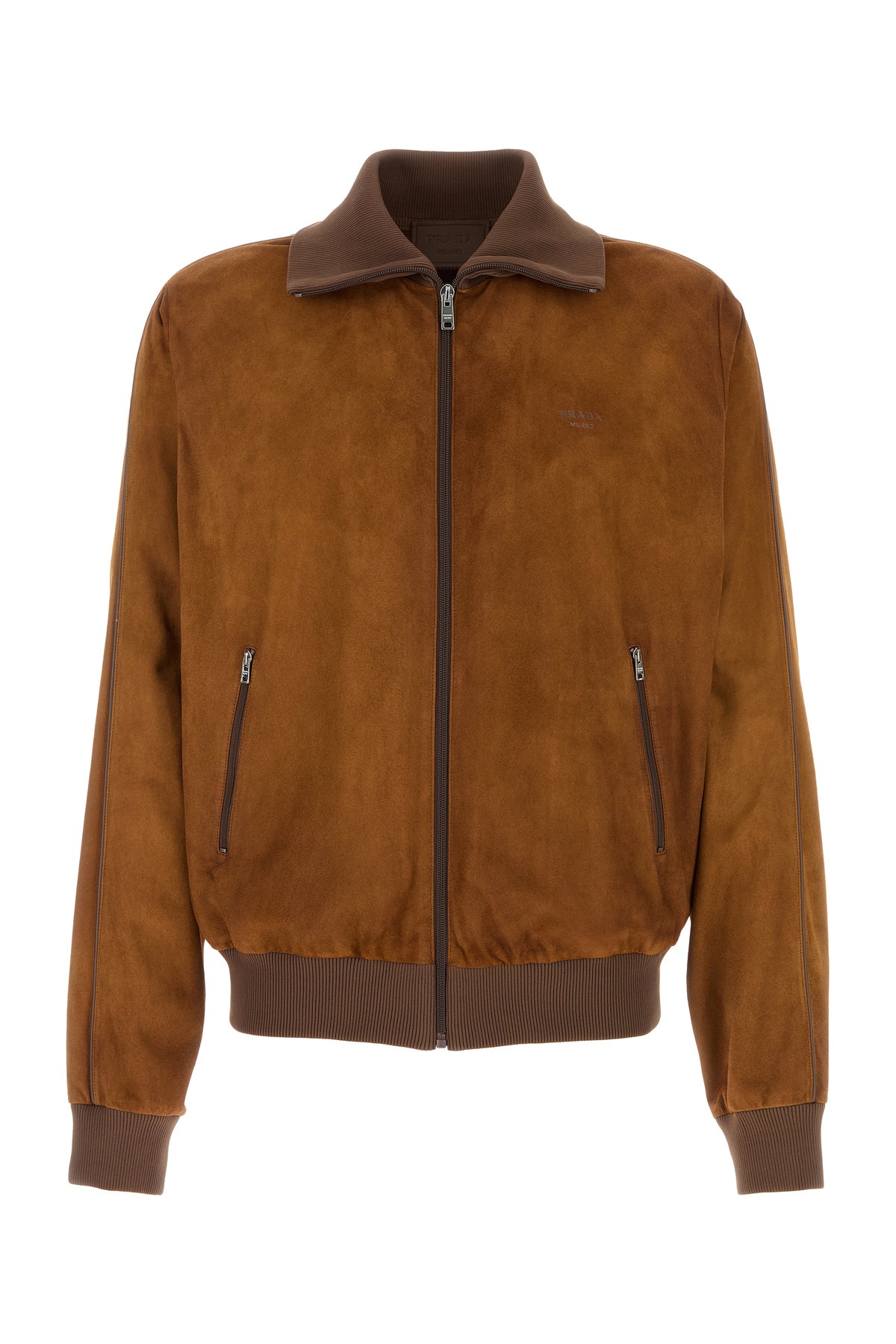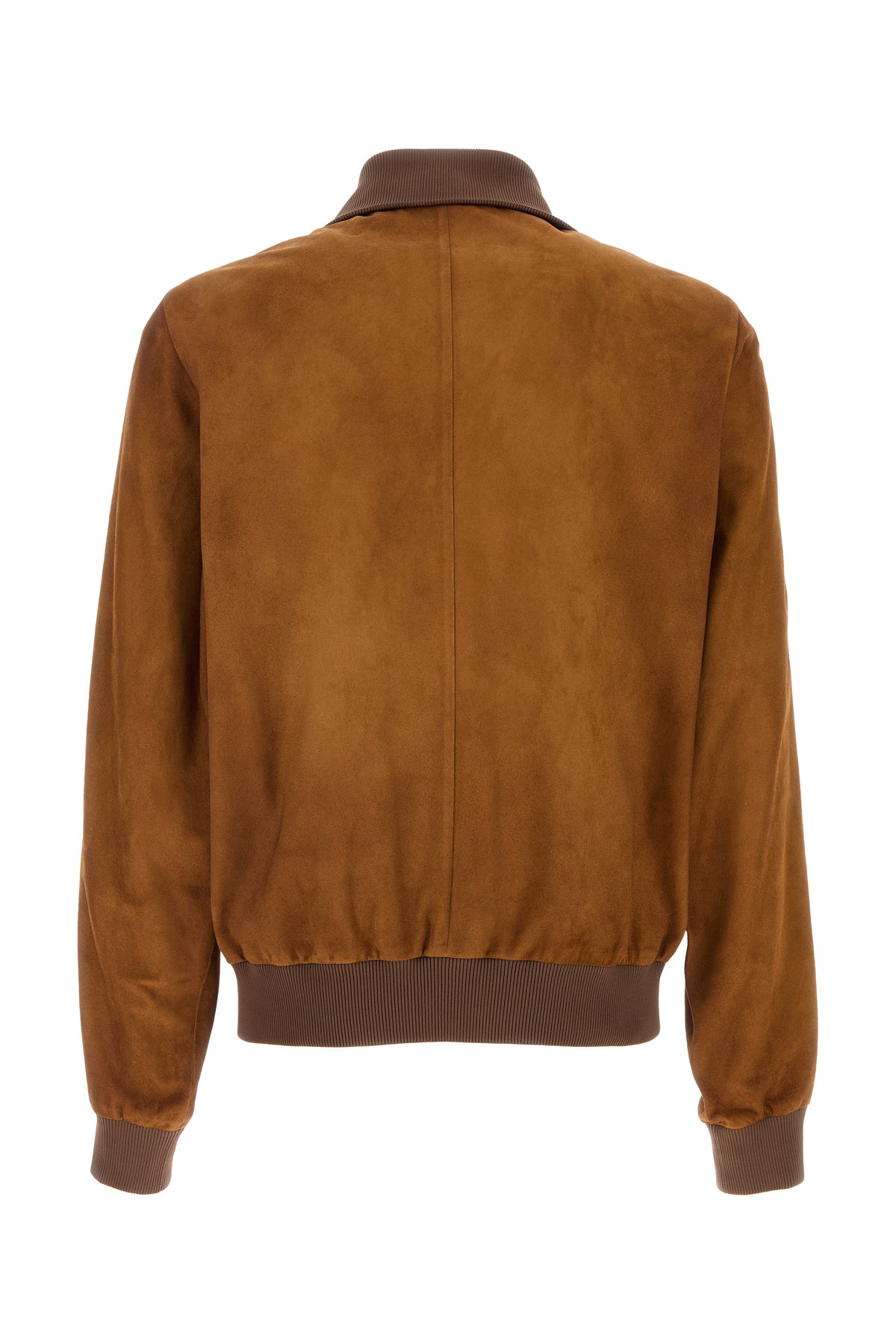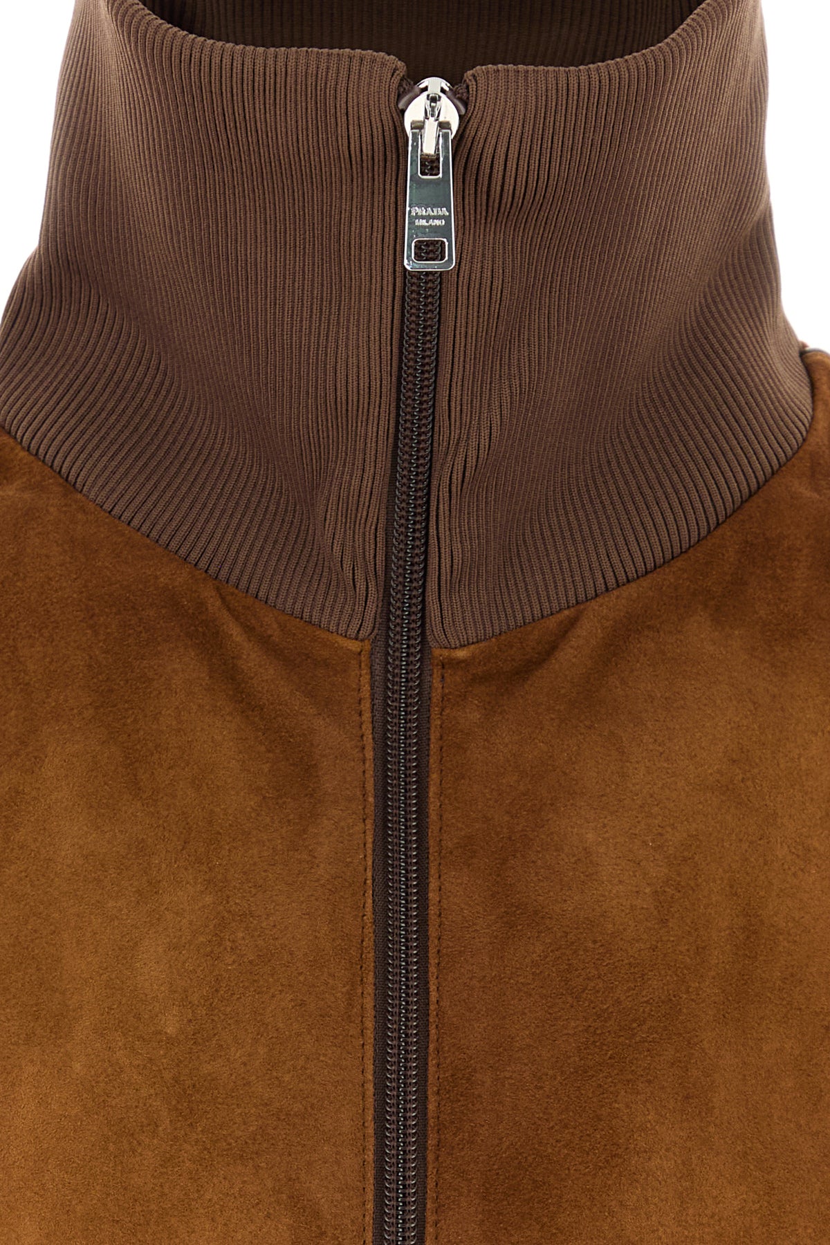 Jacket realized in lamb suede characterized by contrasting printed logo on the chest.