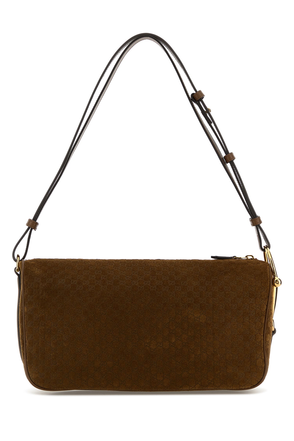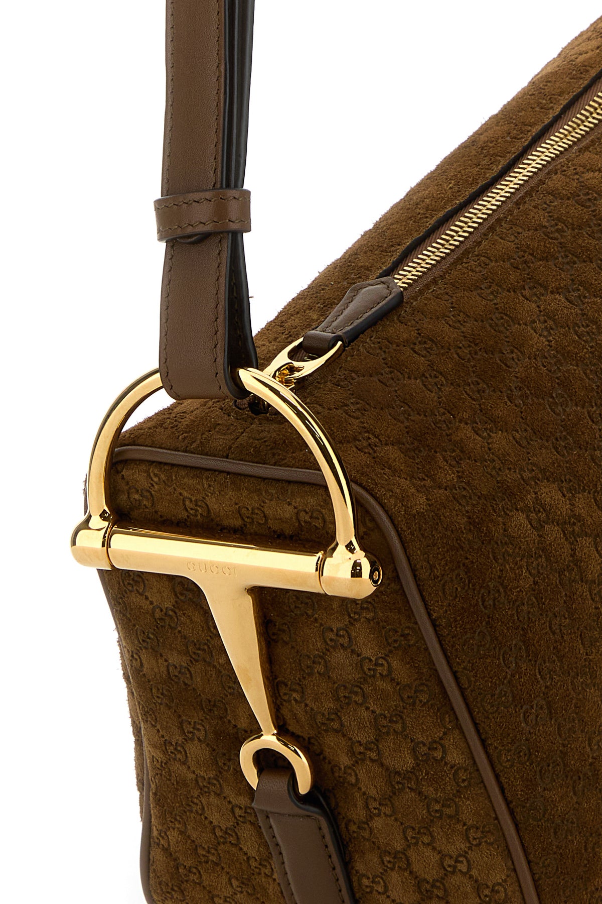 Shoulder bag realized in suede characterized by embossed GG motif on the entire surface enriched by Half Horsebit metal detail on the side.