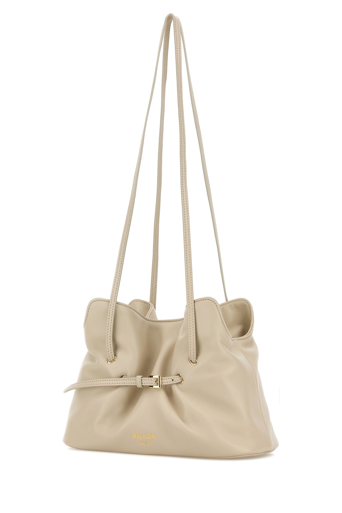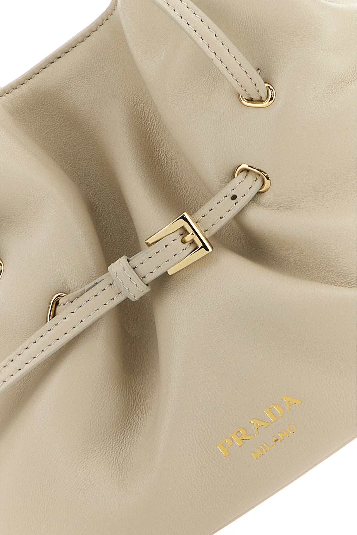 Bucket bag realized in nappa leather characterized by laminated printed logo at the front.