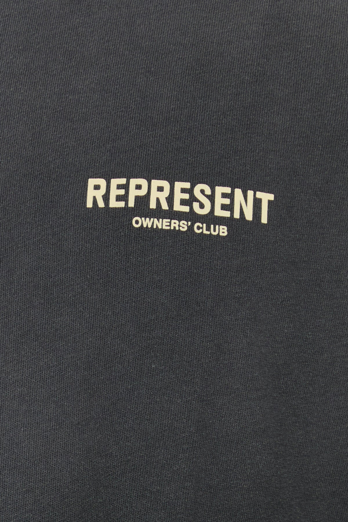 T-shirt realized in pure cotton characterized by Represent Owners Club print at the chest and at the back enriched by metal logoed plate on the hemline.