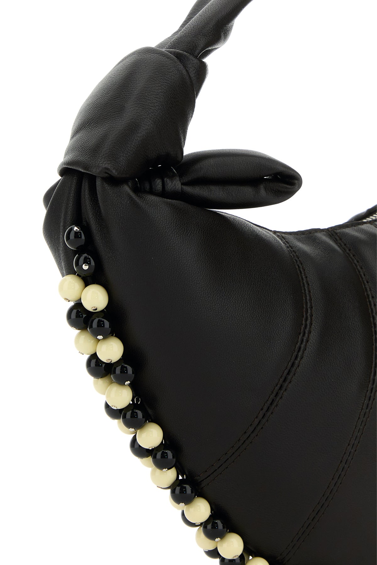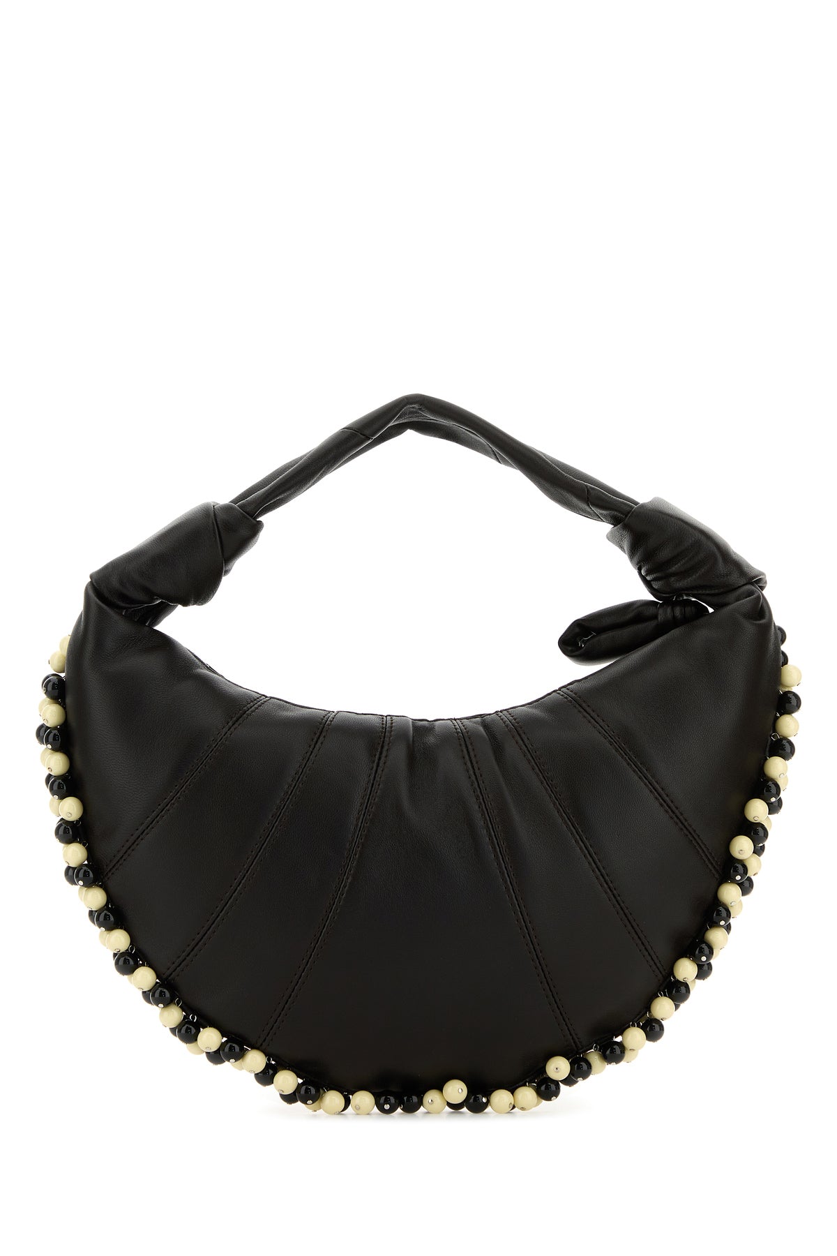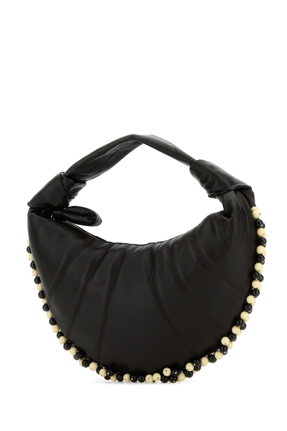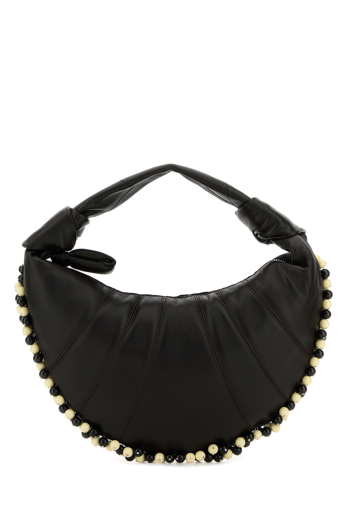 Handbag realized in lamb nappa leather enriched by contrasting beads on the hemline.
