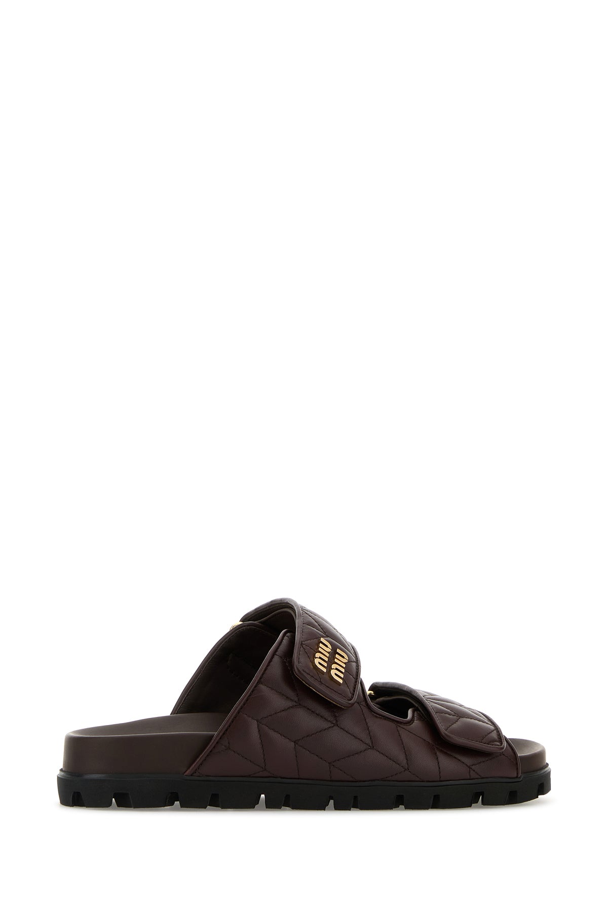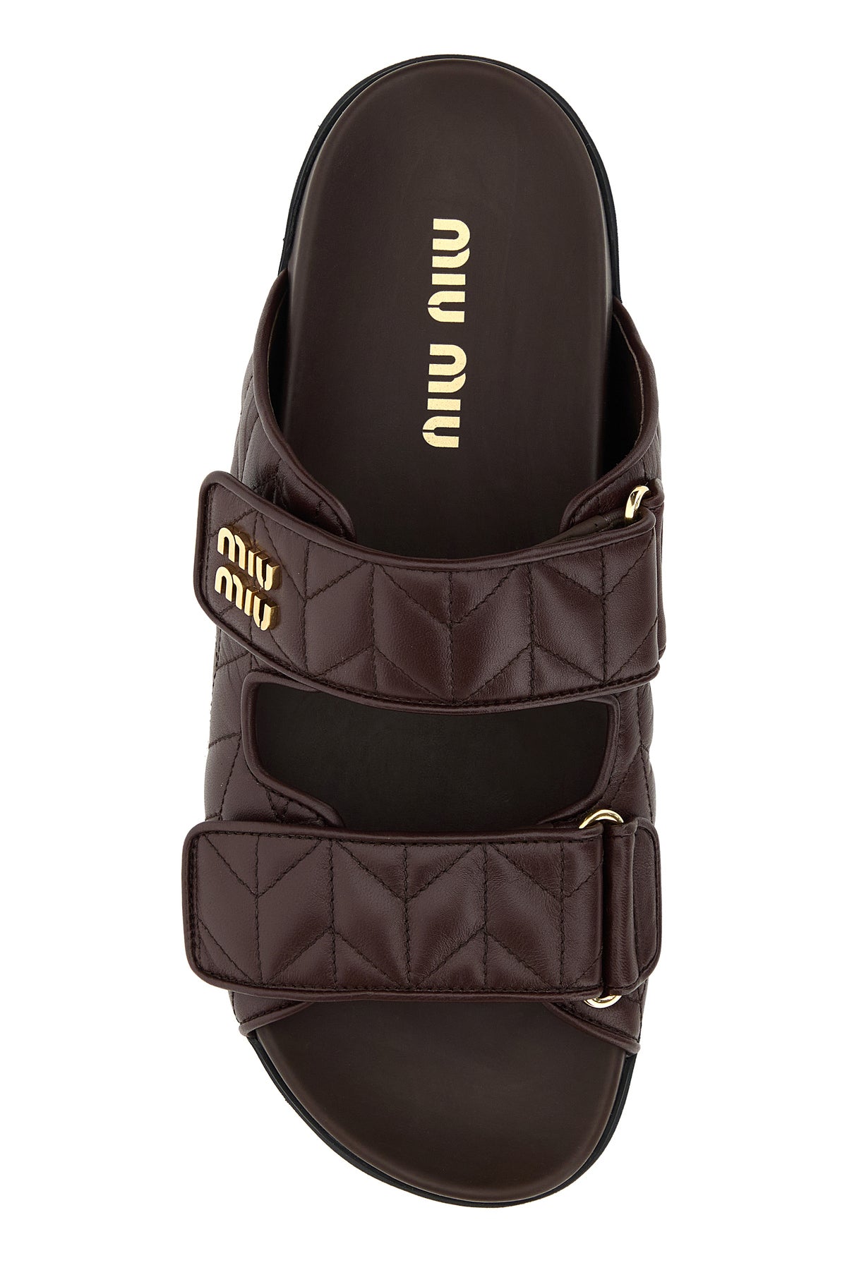 Slippers realized in padded and quilted matellasse nappa leather enriched by metal lettering logo on the side.