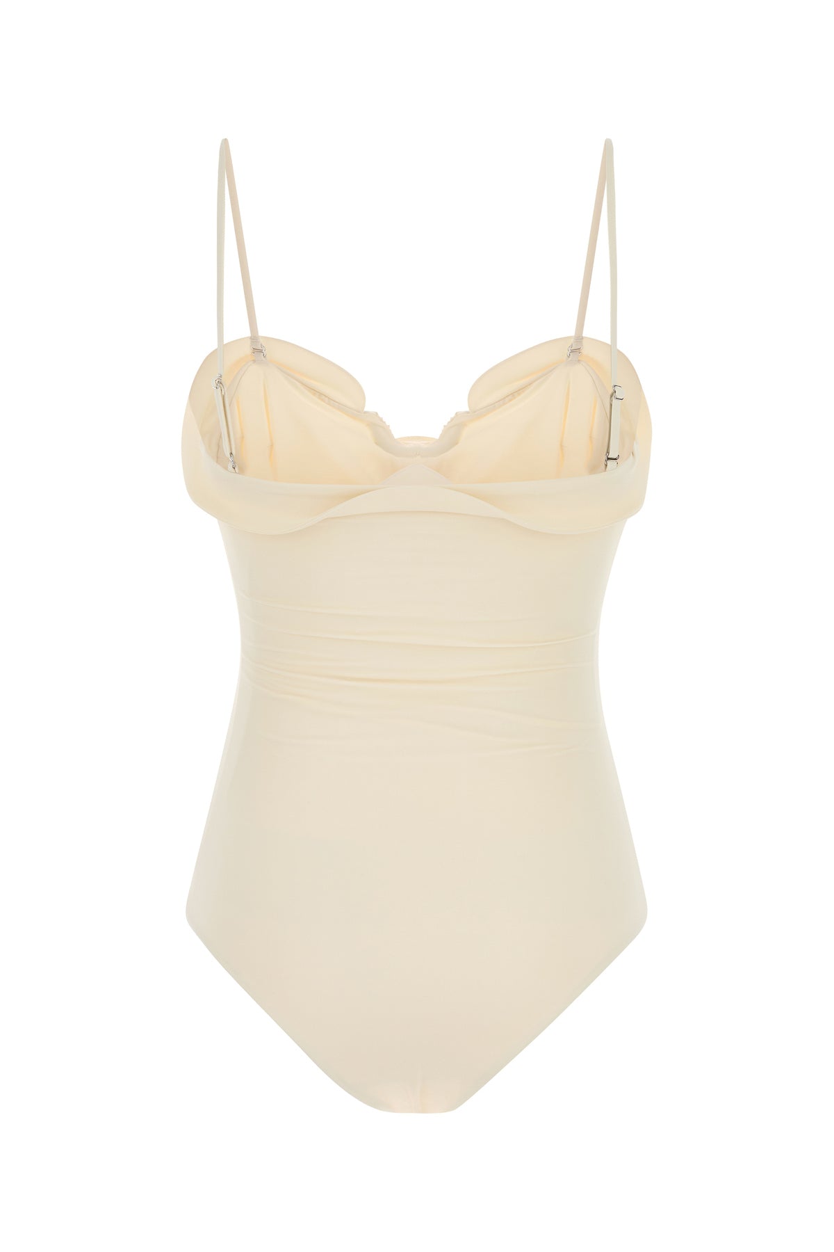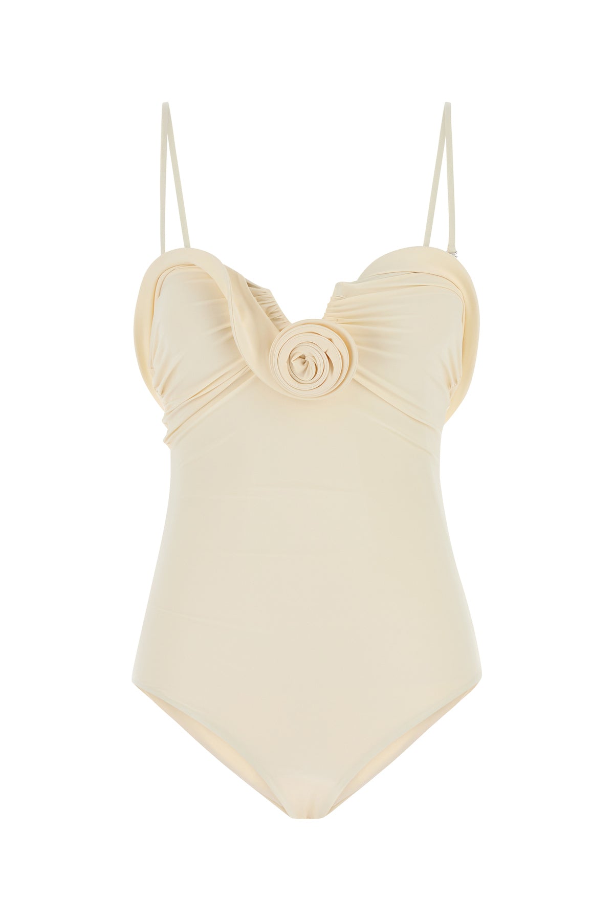 Swimsuit realized in stretch nylon enriched by floral patch on the neckline.