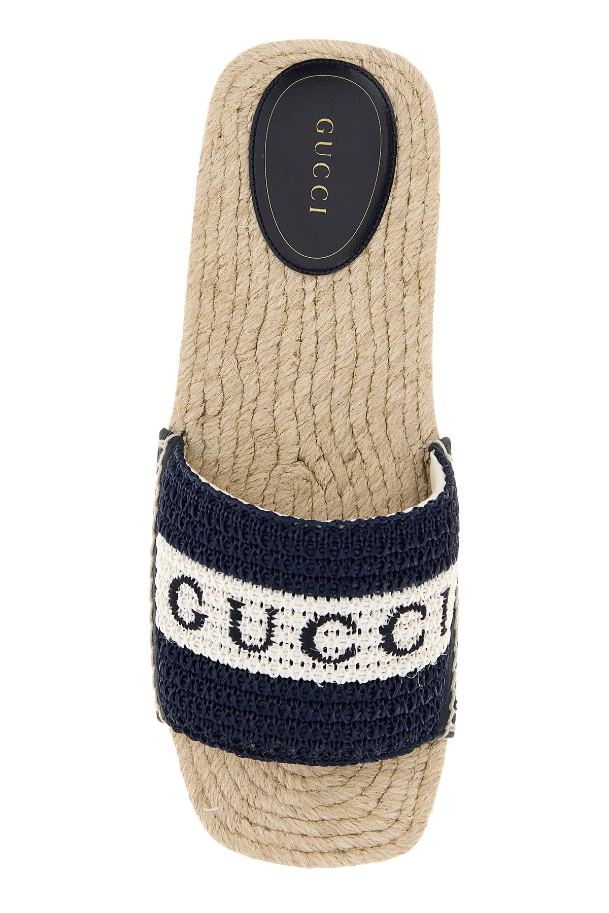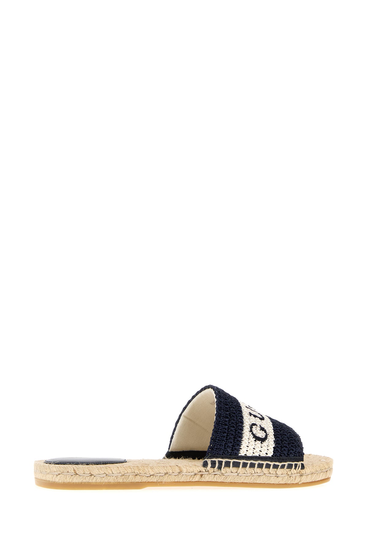 Slippers realized in raffia characterized by embroidered logo on the instep.