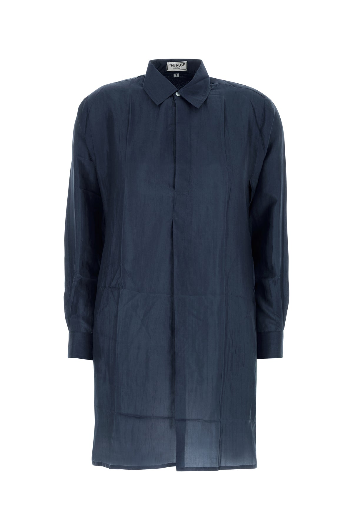Shirt dress realized in pure silk characterized by short-pointed collar