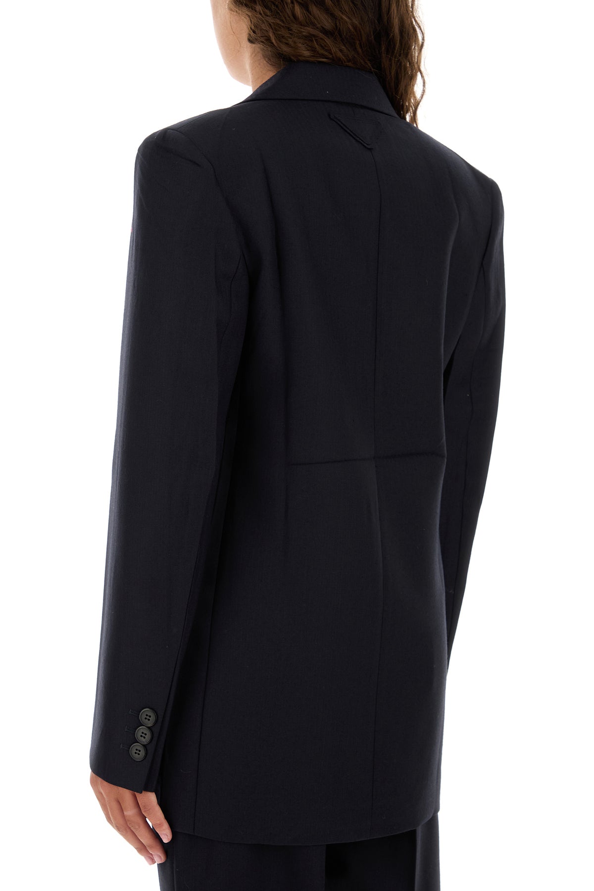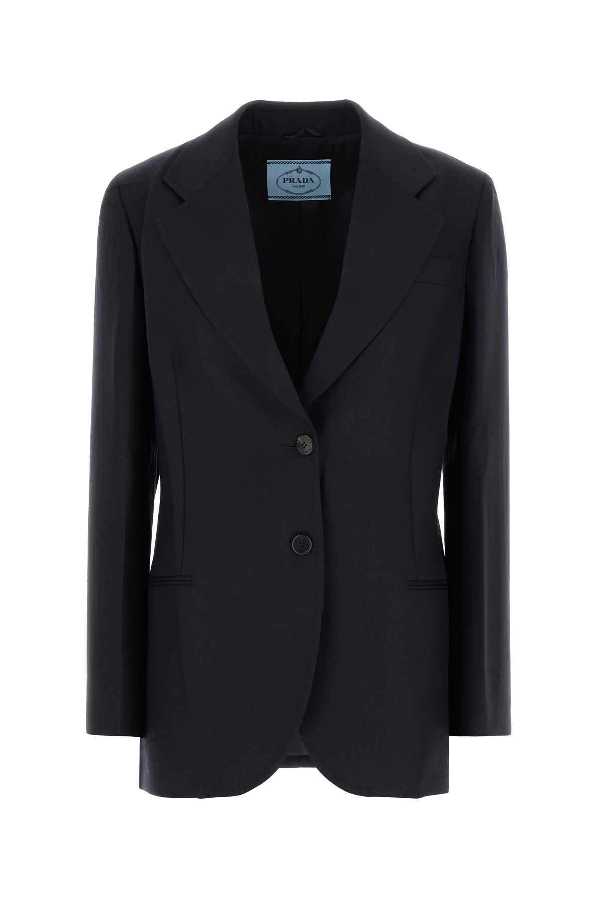 Blazer realized in pure virgin wool characterized by tonal striped embroidery on the entire surface enriched by iconic tonal fabric triangle a the back.