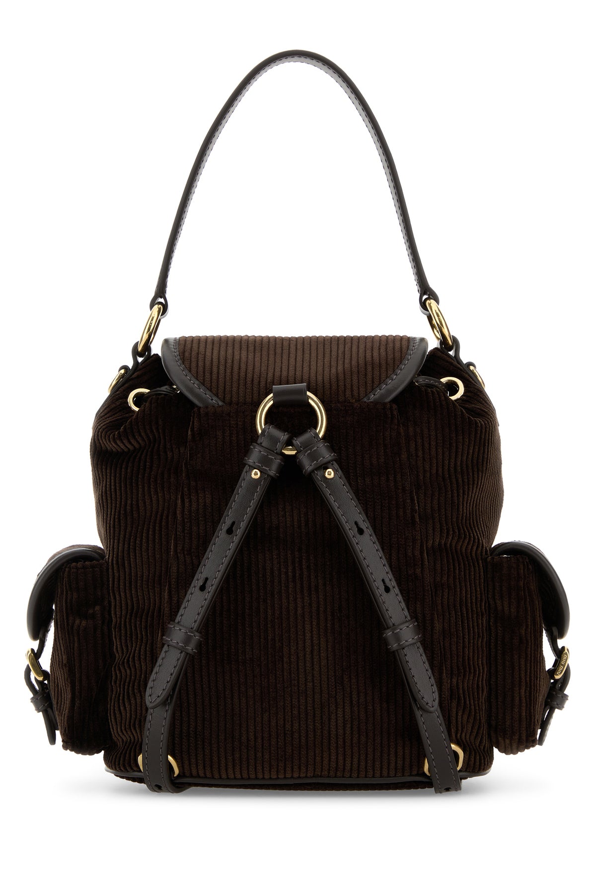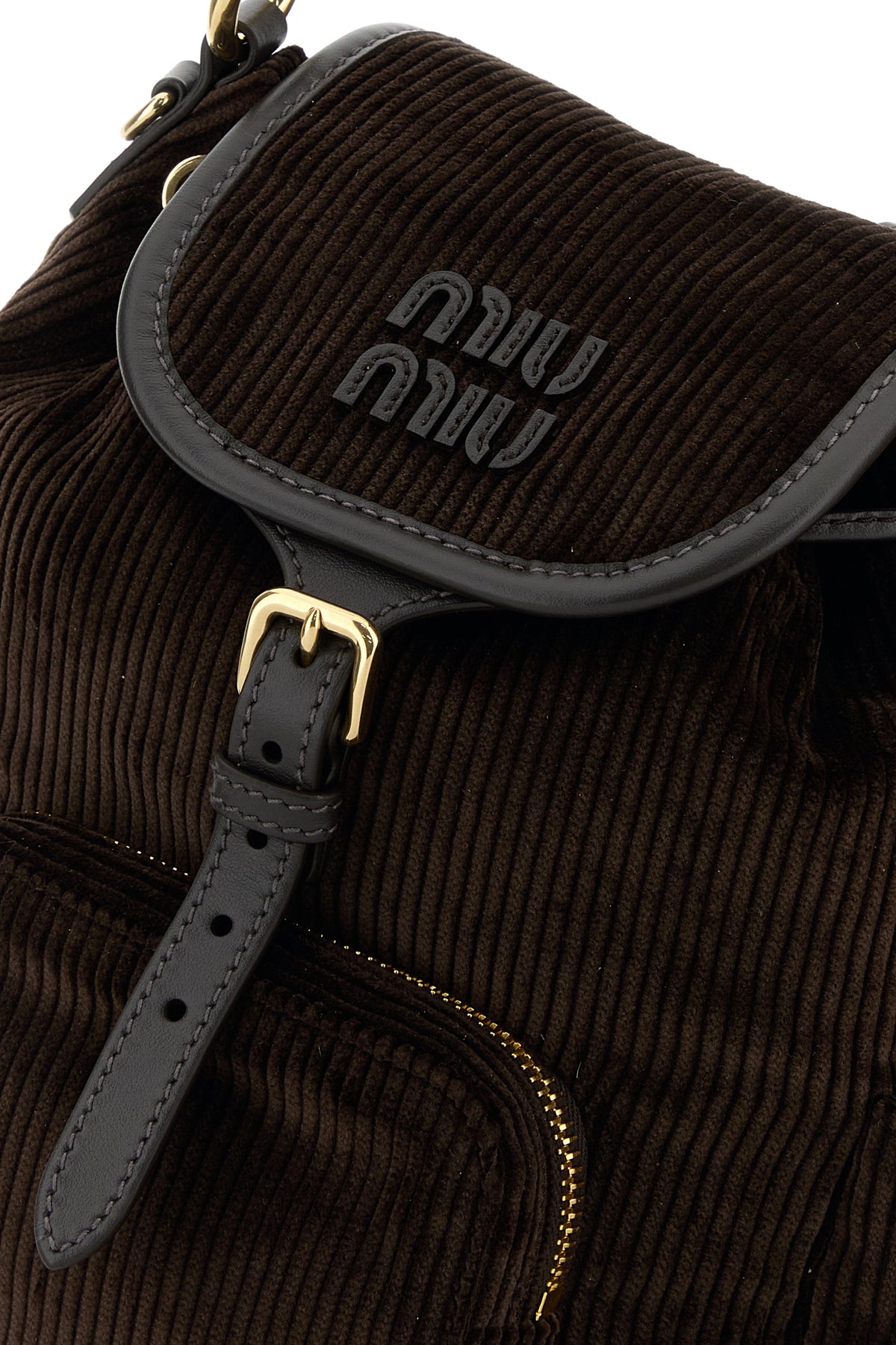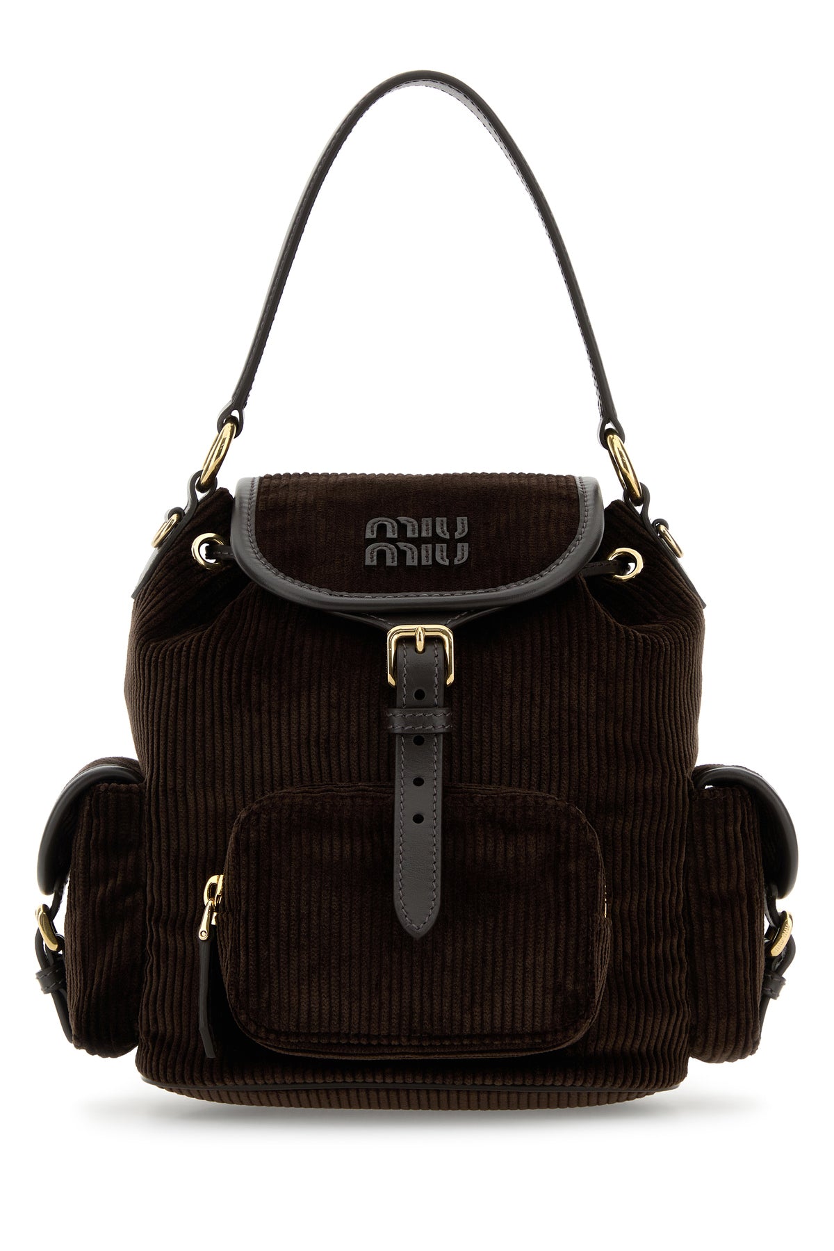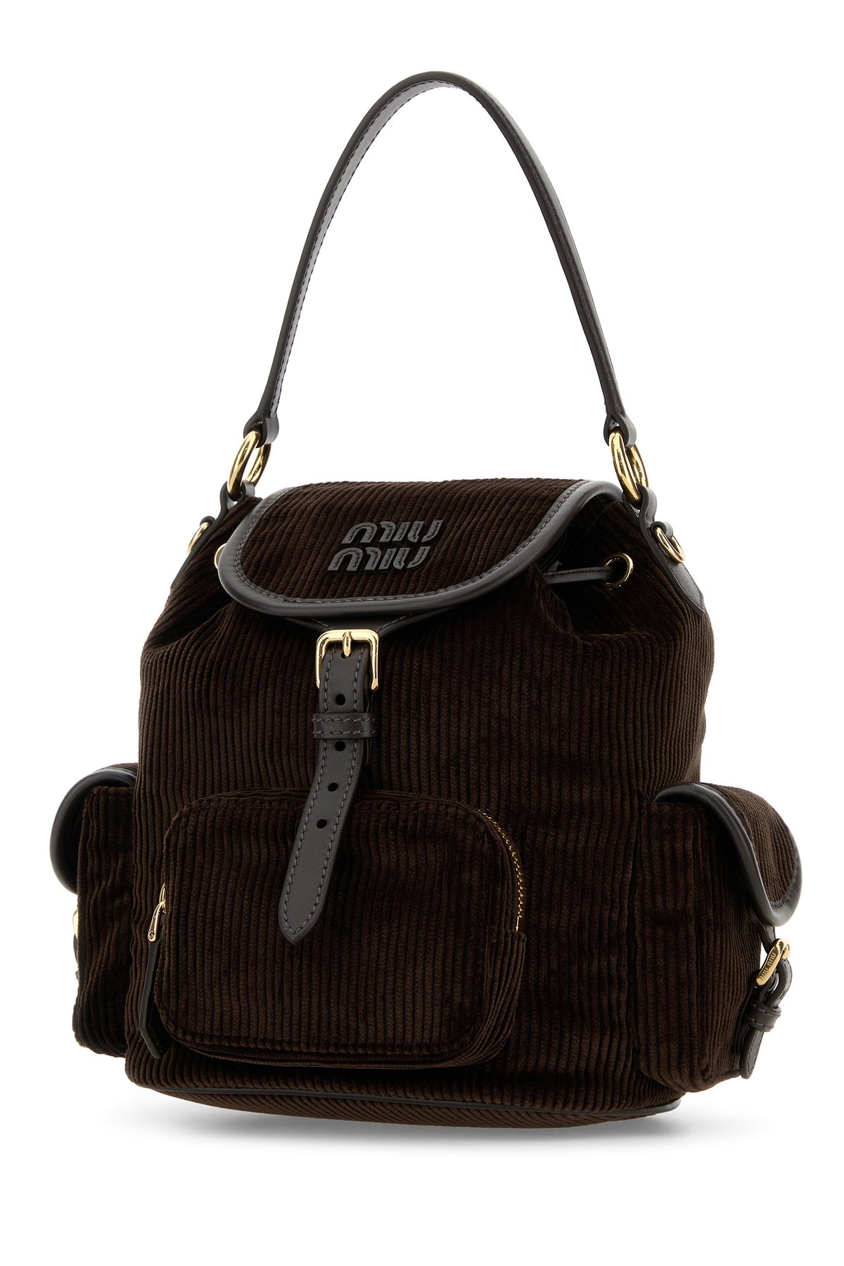 Backpack realized in corduroy enriched by logoed patch at the front.